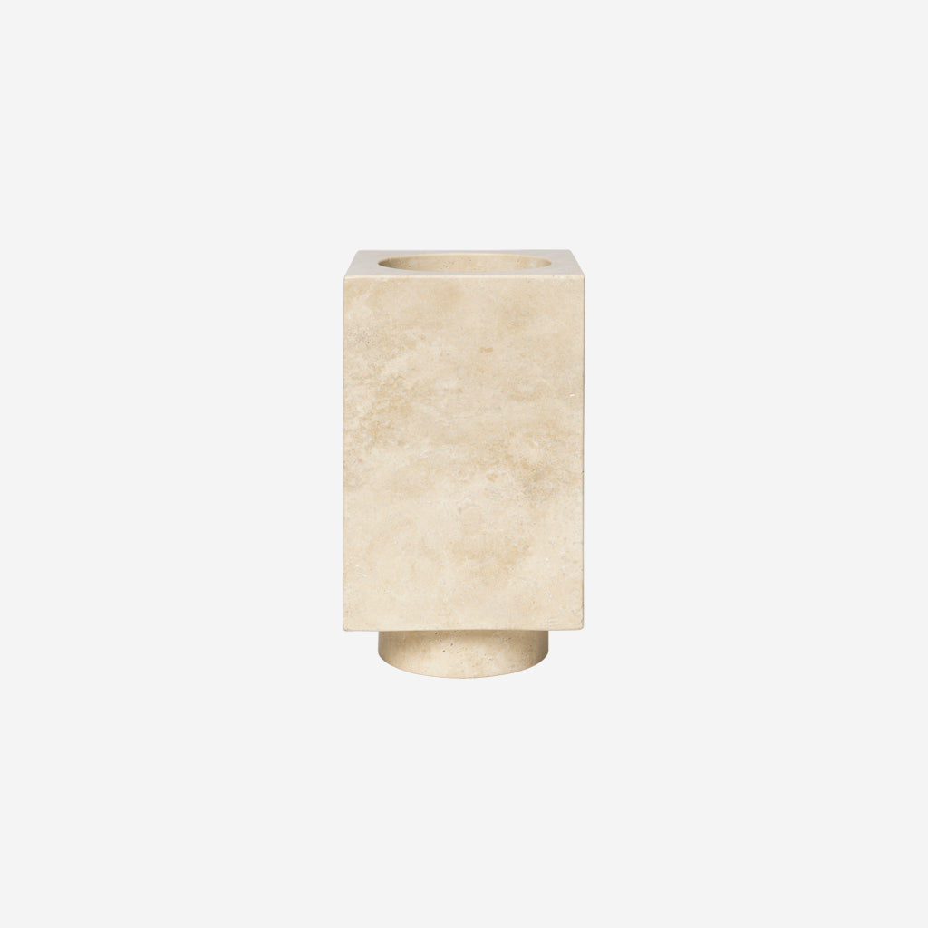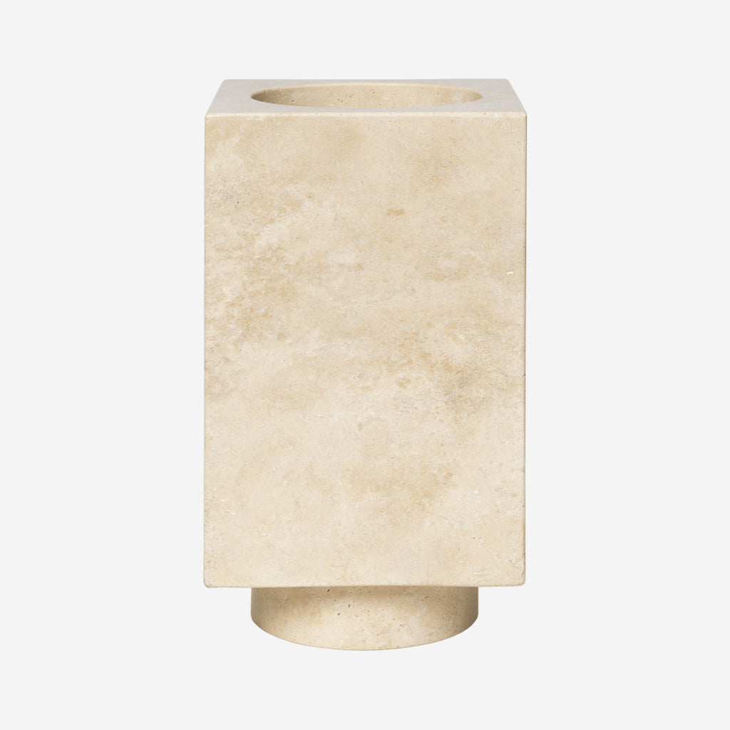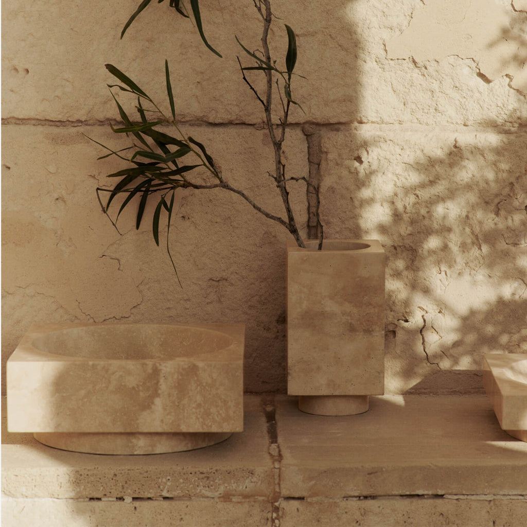 The Hew Series is a collection of solid travertine designs that combine sculptural simplicity with the natural elegance of stone. Crafted from solid travertine blocks, the Hew Vase features a rectangular shape with a rounded concave centre. Its monolithic presence and minimalist design make it a striking centrepiece, showcasing the material sophistication of travertine.