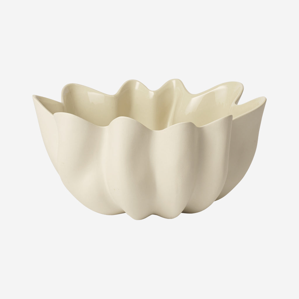 The Nium Bowl takes its design cues from the graceful flow of draped textiles, featuring fluid, elegant folds. The reactive glaze plays with light and shadow, emphasizing the bowl's dynamic curves. Use the Nium bowl as a fruit bowl or serving bowl, or simply display it as a decorative object on its own.