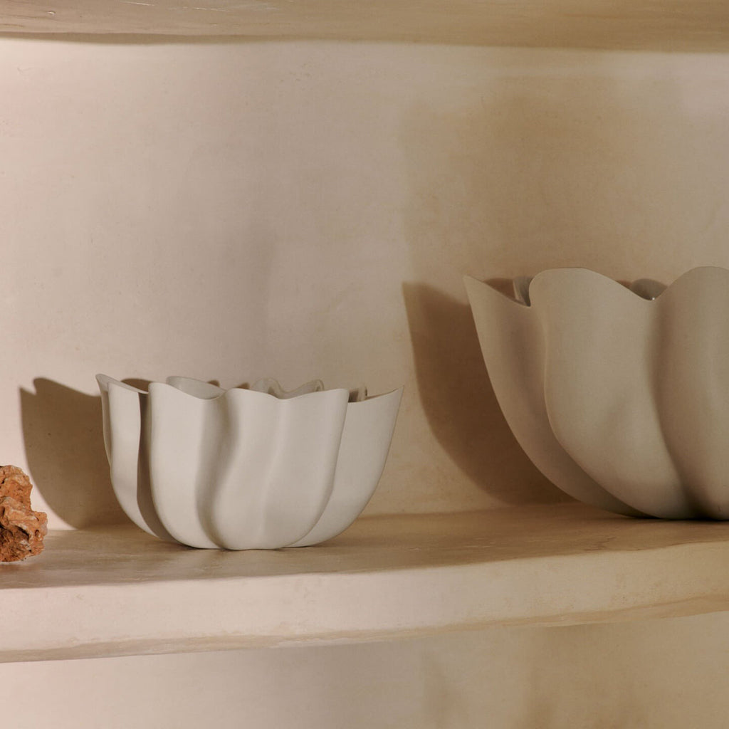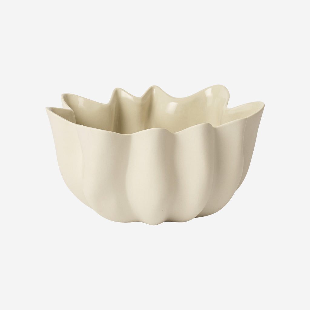 The Nium Bowl takes its design cues from the graceful flow of draped textiles, featuring fluid, elegant folds. The reactive glaze plays with light and shadow, emphasizing the bowl's dynamic curves. Use the Nium bowl as a fruit bowl or serving bowl, or simply display it as a decorative object on its own.