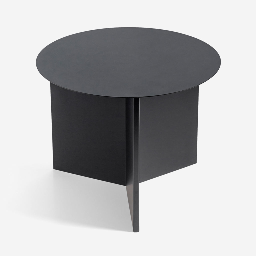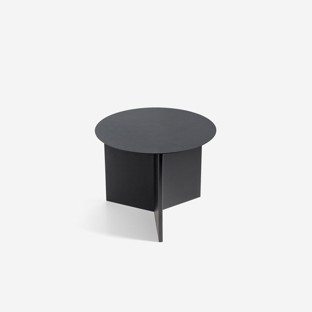 The Slit Table is a successful translation of paper origami crossing over into the metal universe. The name comes from the moment that a slit is produced when the plate frame is folded beneath the tabletop.