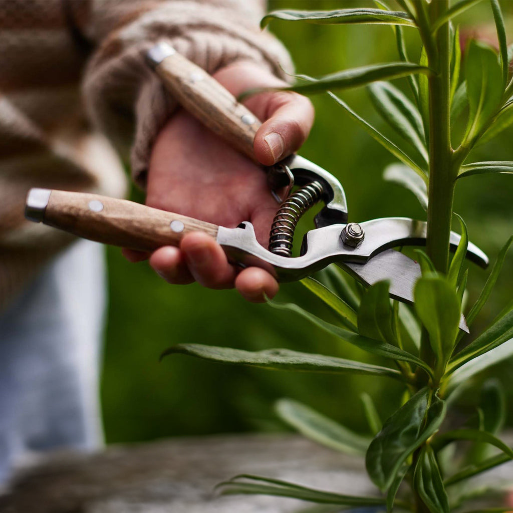 Wonderful secateurs with drop forged stainless blades. Lovely wooden ash handles with sharp blades. Finally one that fits the bill for useful and beautiful! Wood is an individual thing and your pair may vary from the picture. NB: protect your secateurs from corrosion by wiping them with soapy water after pruning and rubbing the blades/steel with vegetable oil, especially when cutting plants with high sap levels, as this can be quite corrosive.