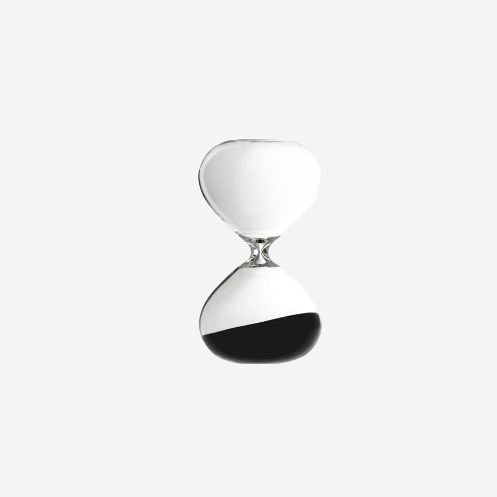 How long is 30 minutes? Keep track of time with this beautiful, wide hourglass by Japanese design brand Hightide. Carefully hand made, this clear hourglass with black sand, will look great on your desk, bookshelf or kitchen counter.