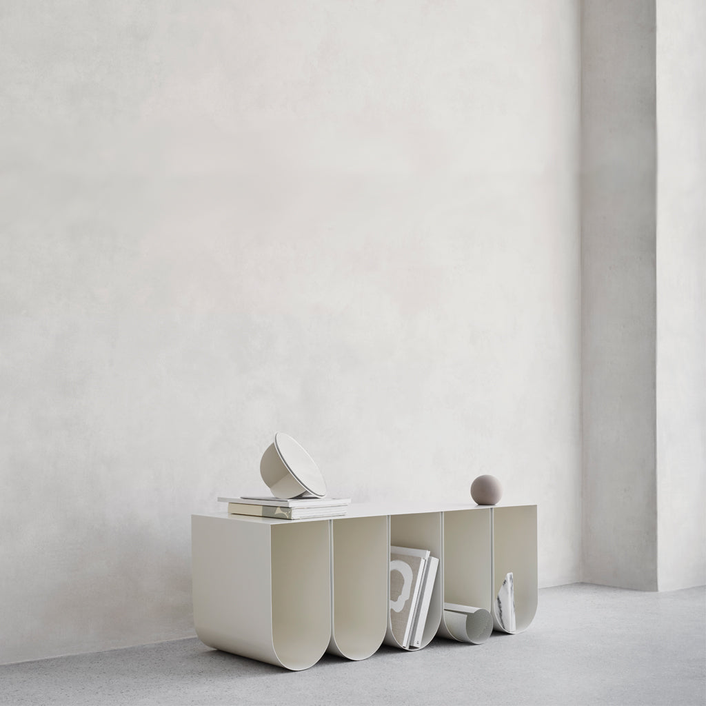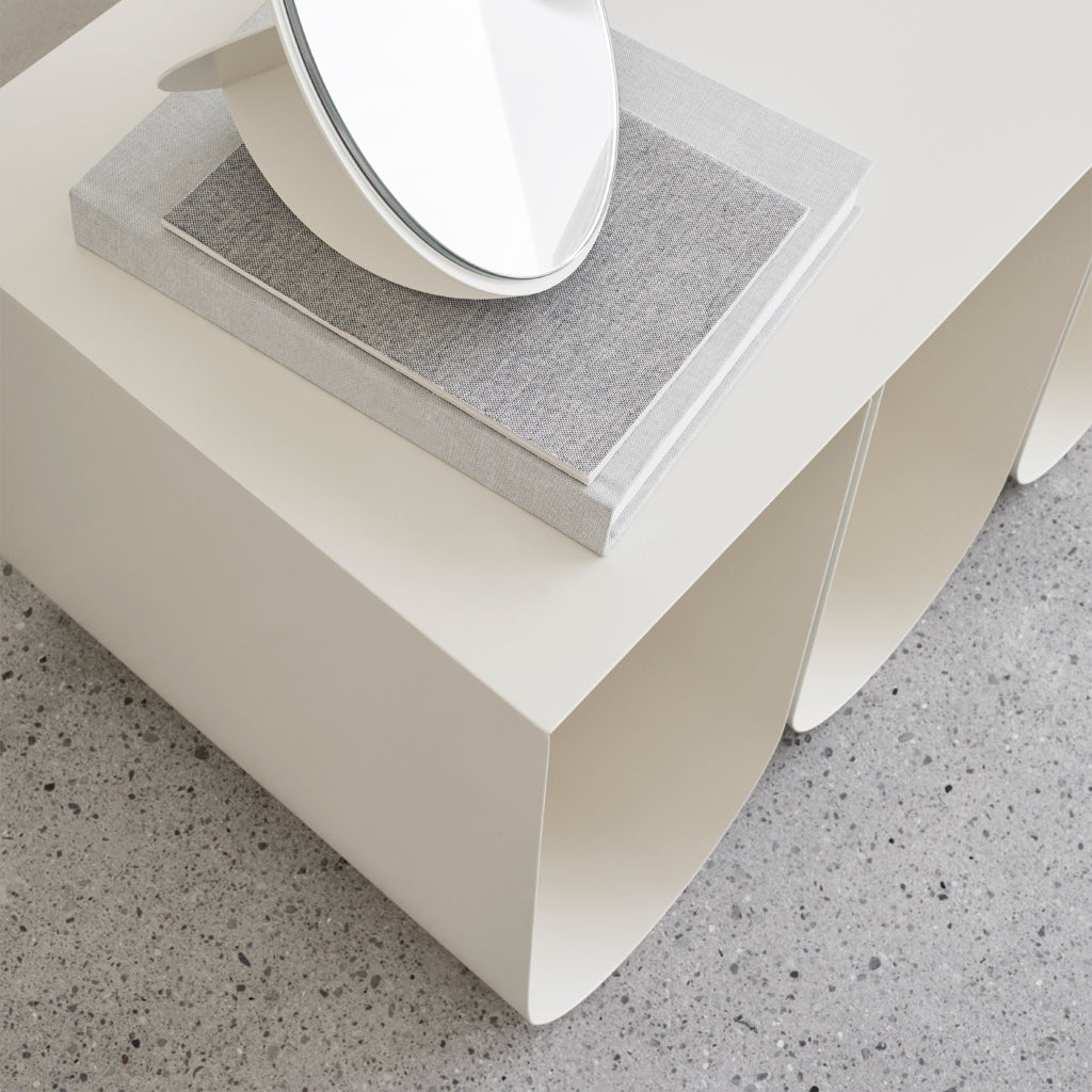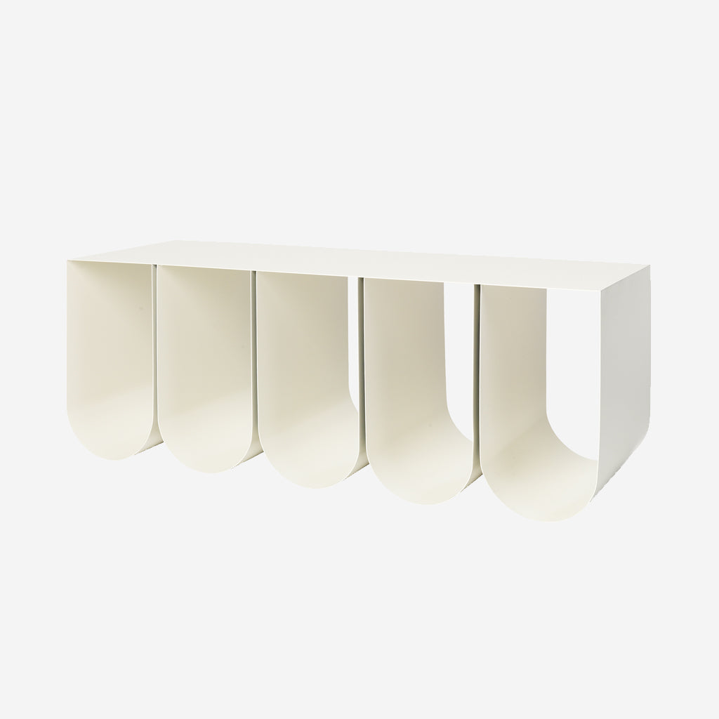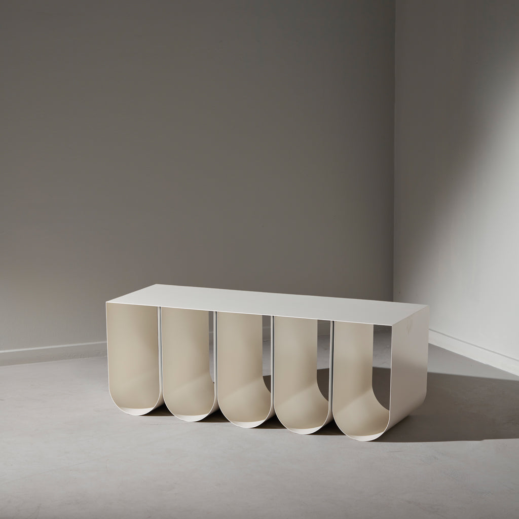 The Curved Bench is a beautiful and timeless extension of the curved side table that combines a sculptural and handcrafted aesthetic. Made of slick black powder coated steel this small side table is also able to store your magazines within its curved base or it can sit confidently on its own as a sculptural centerpiece in a modern home.