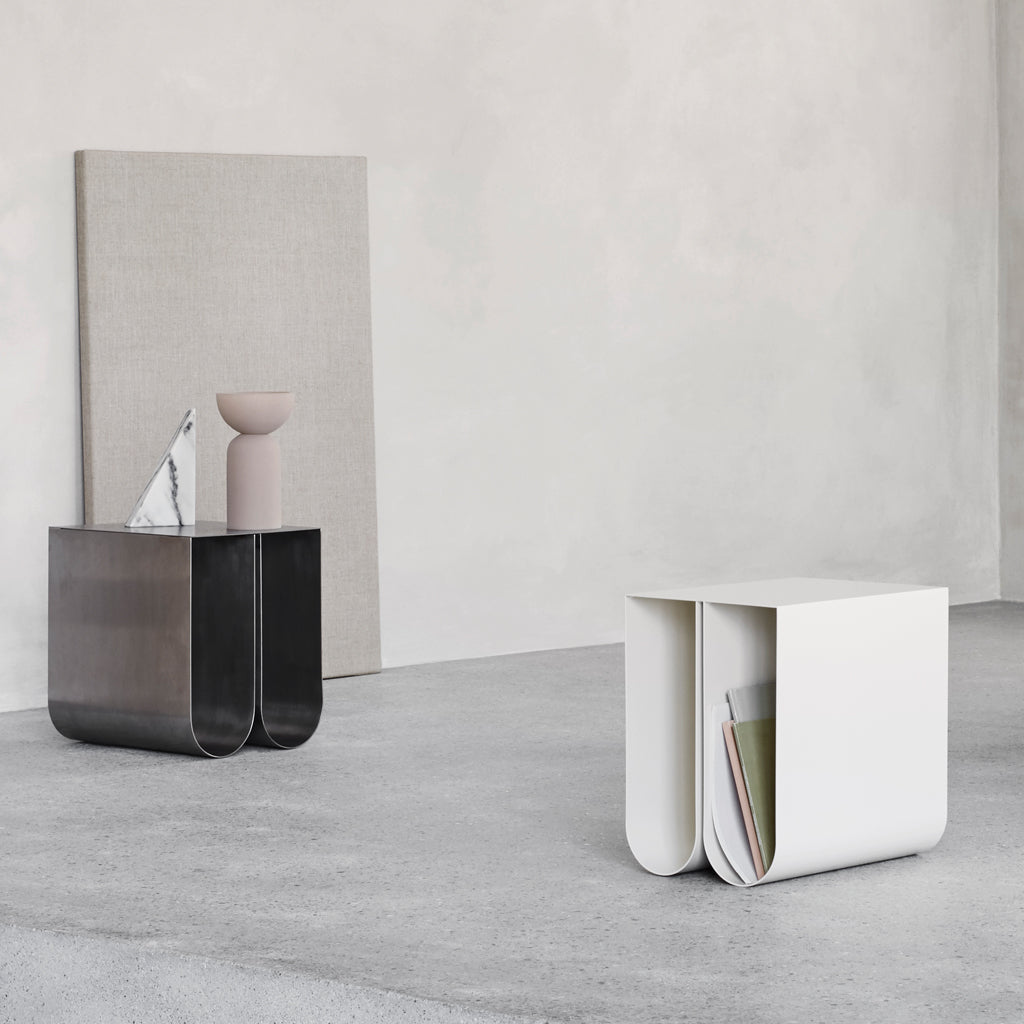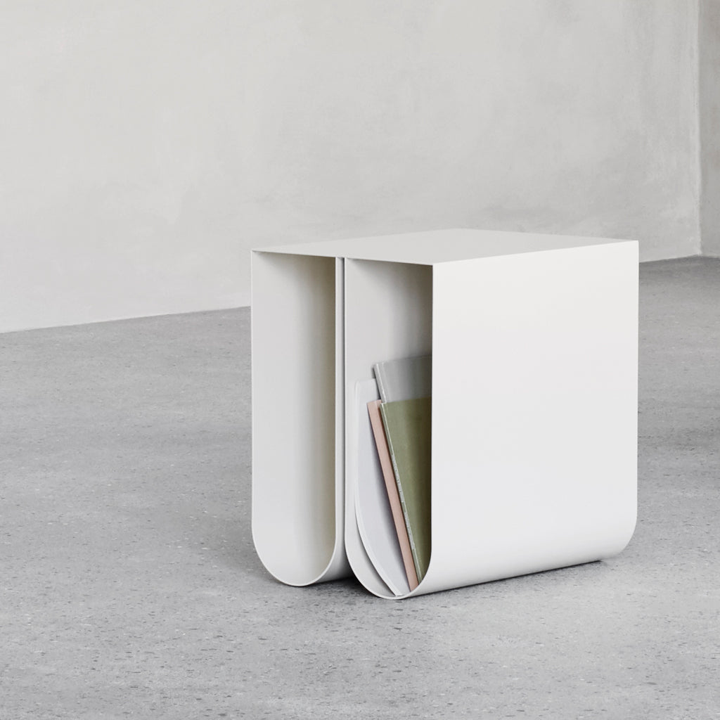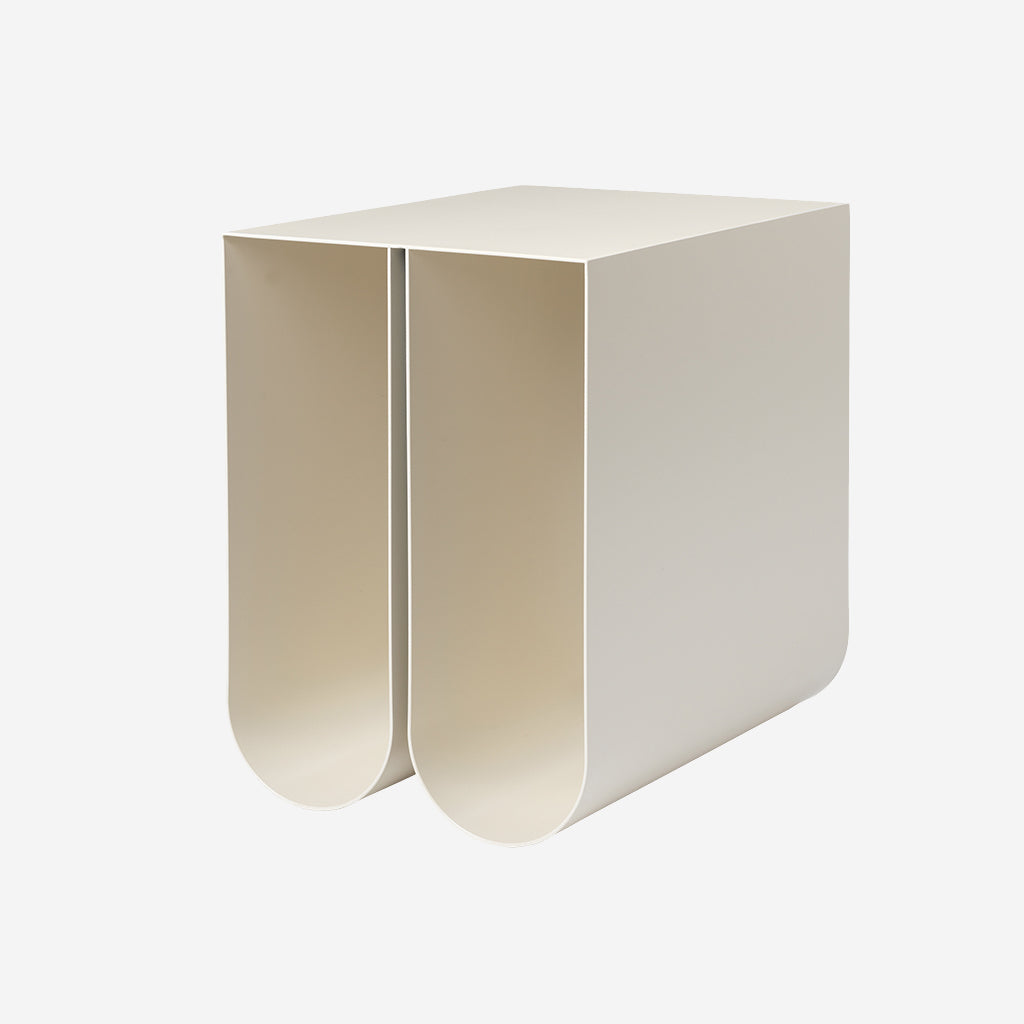 The Curved Side Table is a beautiful and timeless small table that combines a sculptural and handcrafted aesthetic. Made of slick off white powder coated steel this small side table is also able to store your magazines within its curved base.