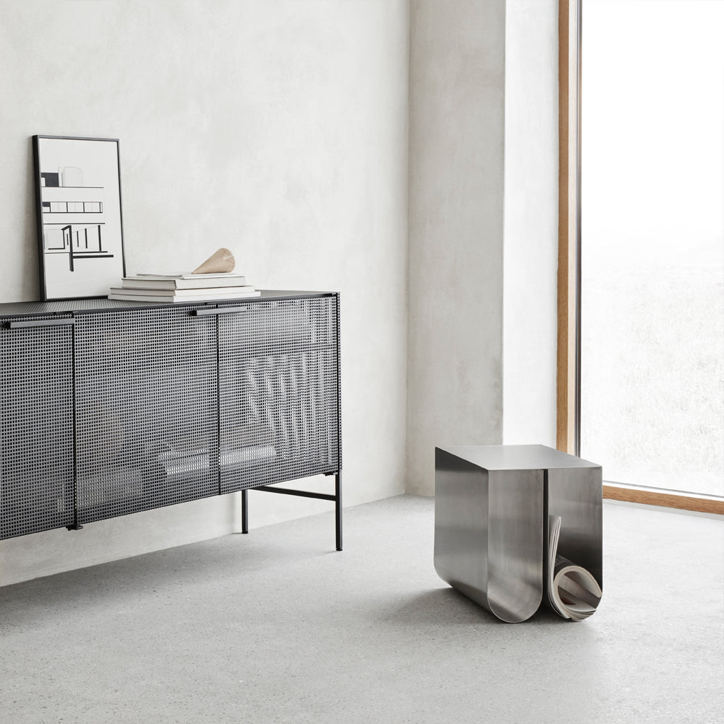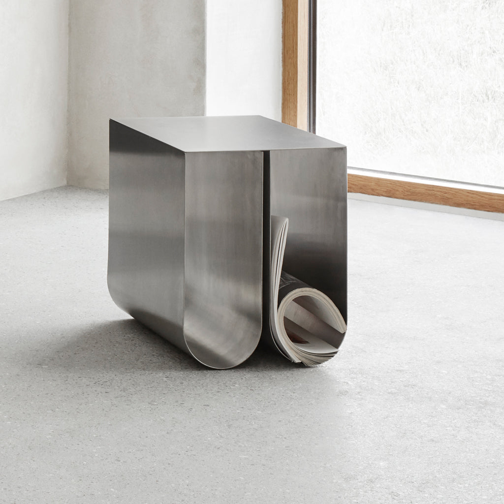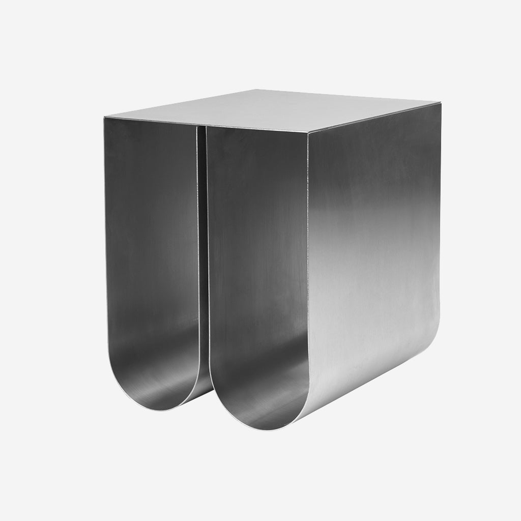 The Curved Side Table is a beautiful and timeless small table that combines a sculptural and handcrafted aesthetic. Made of slick black powder coated steel this small side table is also able to store your magazines within its curved base.