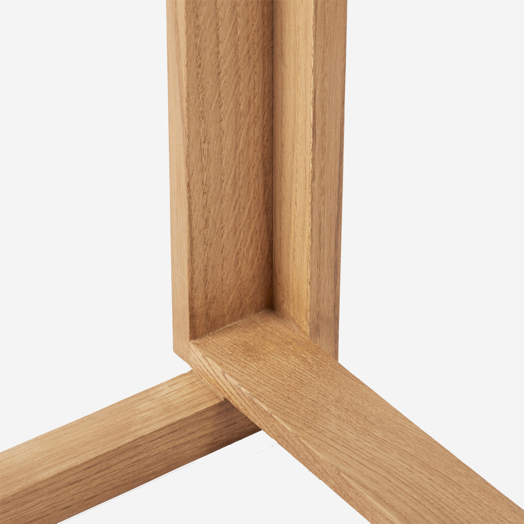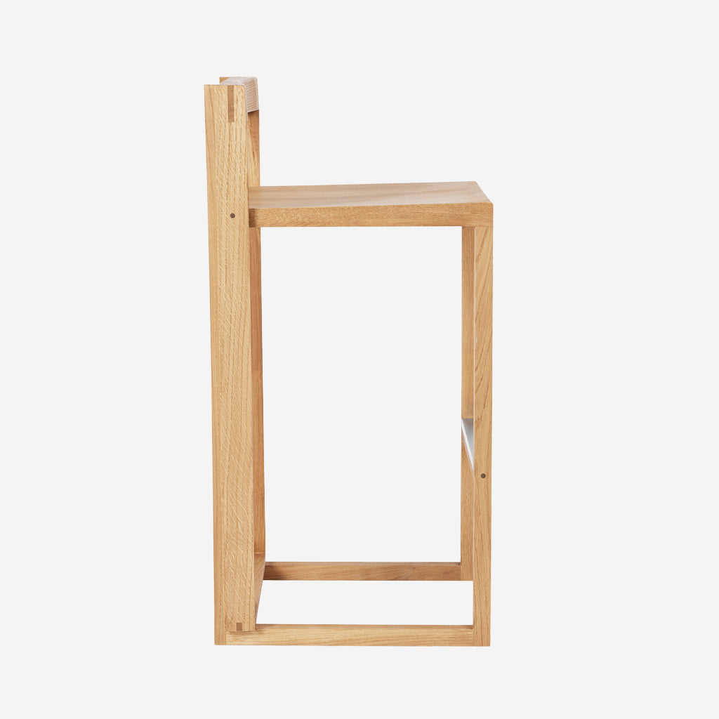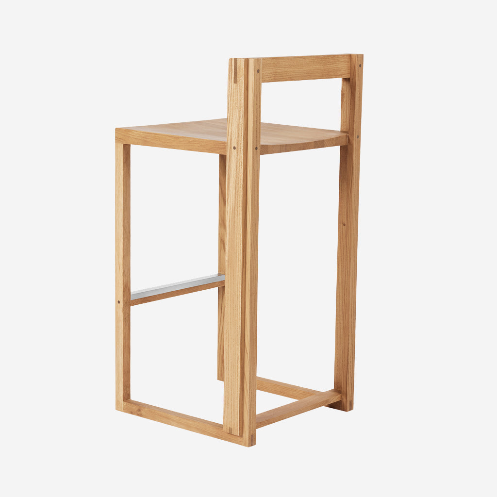 The Outline Bar Chair has a minimalist, airy aesthetic, allowing it to fit easily into any interior design style. The interplay of wooden rectangles creates the visual harmony that is key to Kristina Dam Studio’s ethos of “sculptural minimalism.” Made from warm FSC-certified, matte lacquer-coated oak and a brushed aluminum footrest, the Outline Bar Chair is easy to clean and maintain; it’s a long-lasting piece that will look sharp for years.