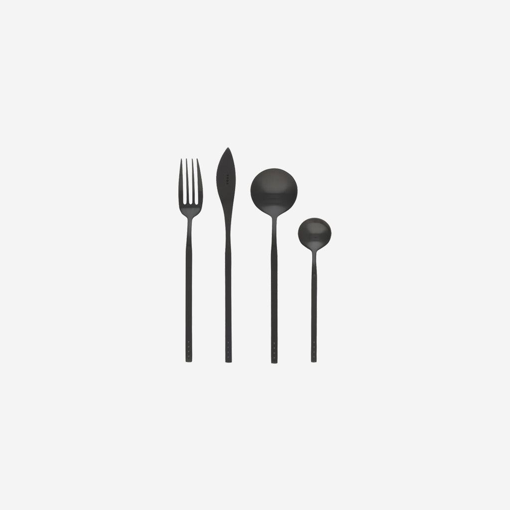 The 24 piece Matte Black set is for those that love a malt whiskey and all things Rick Owens. Made from high-grade, dishwasher safe 18/10 stainless steel, titanium coated Matte Black in colour and feature the signature four dot logo.