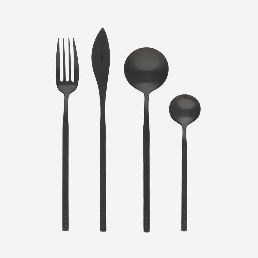 The 8 piece Matte Black set is for those that love a malt whiskey and all things Rick Owens. Made from high-grade, dishwasher safe 18/10 stainless steel, titanium coated Matte Black in colour and feature the signature four dot logo.