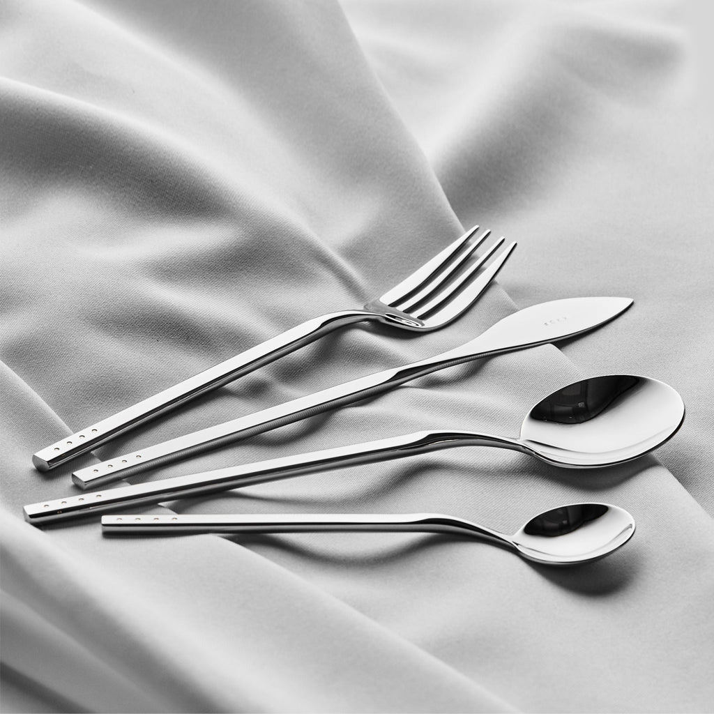 The 8 piece Polished Silver set is for the classic purist. Made from high-grade, dishwasher safe 18/10 hand polished stainless steel and feature the signature four dot logo.