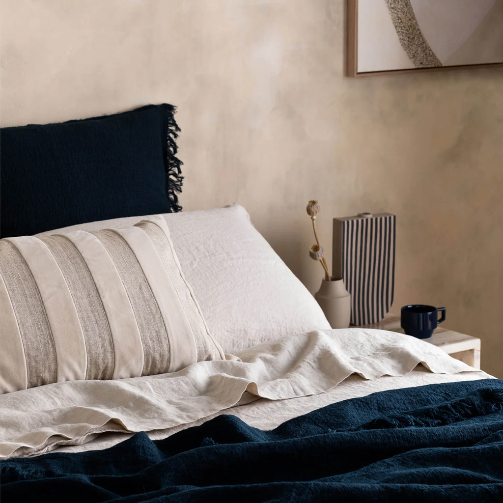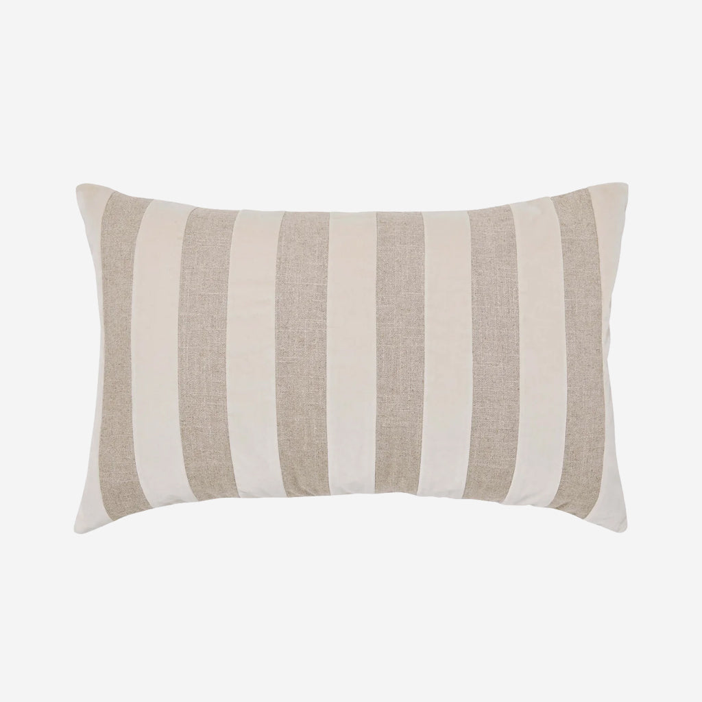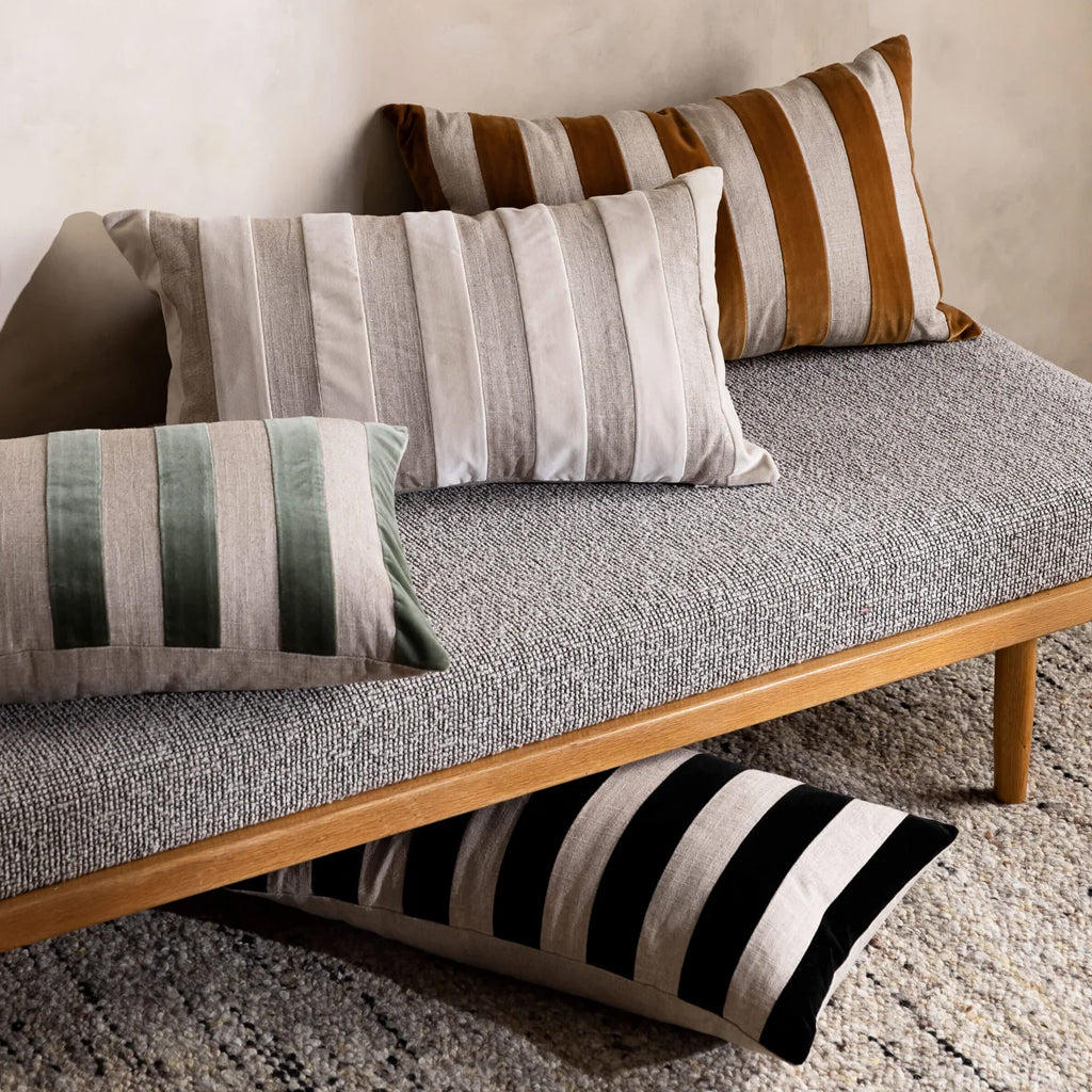 The LM Home Etro Stripe Velvet Cushion in Almond is a designer staple, perfect for adding a touch of luxury and texture to any space. Made from a sumptuously soft cotton velvet with alternating natural linen stripes, this chic style statement will bring warmth and texture to any space. Featuring a natural linen reverse and a plush feather insert included.