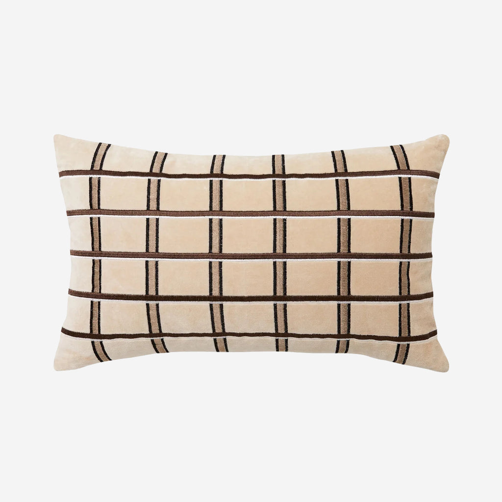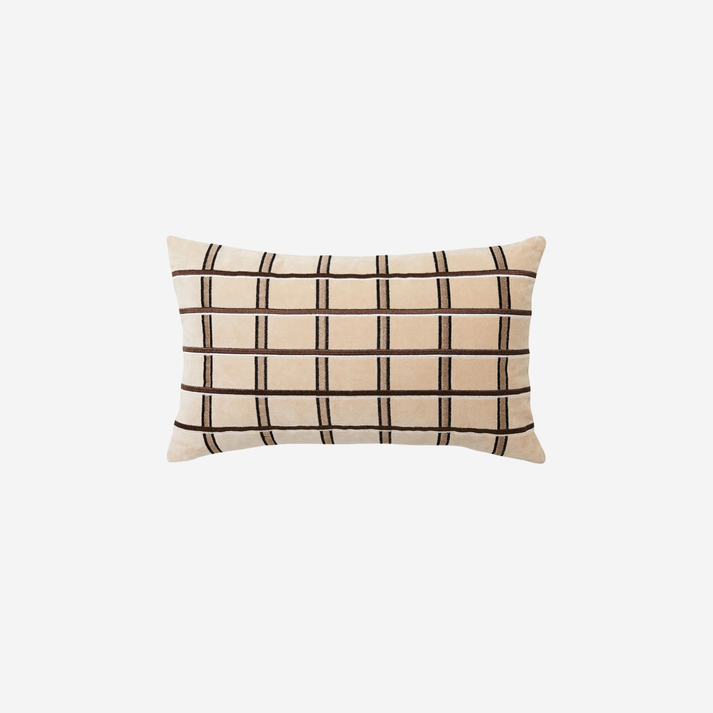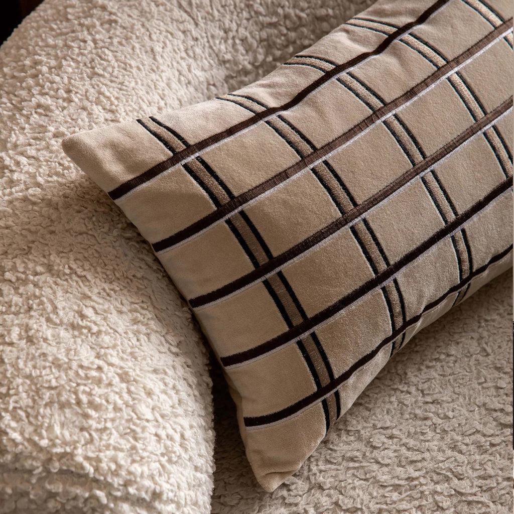 LM Home's Eze collection draws on the traditional craft of embroidery in a contemporary way. Made from soft and lustrous cotton velvet, and embroidered with a statement grid design, Eze will bring warmth and texture to any space. Featuring a natural linen reverse and a plush feather insert included.
