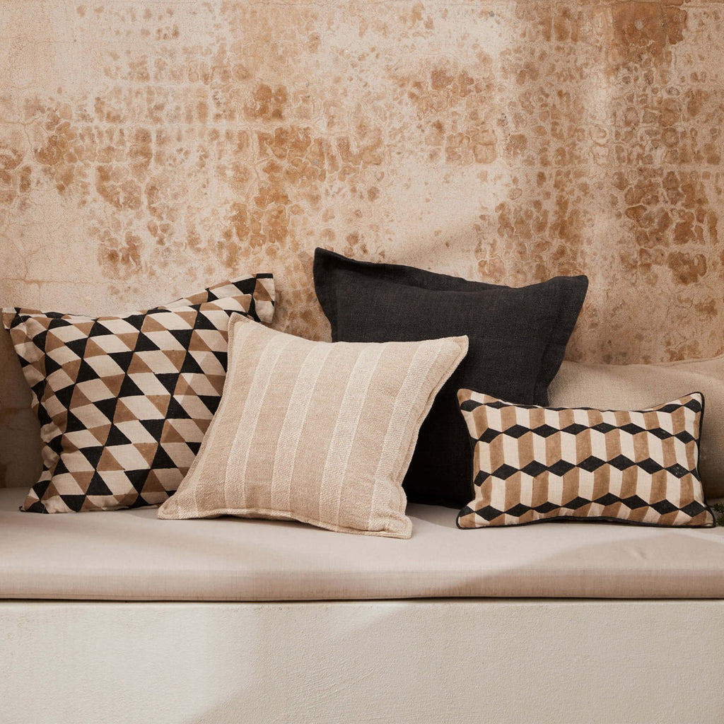 Introduce a statement geometric print into your home with LM Home's hand-block printed Lorenzo cushion, featuring a flange edge. Each piece is a testament to craftsmanship and design, meticulously handmade by highly skilled artisans. Designed in house and hand block printed in Jaipur, India on quality pure linen.
