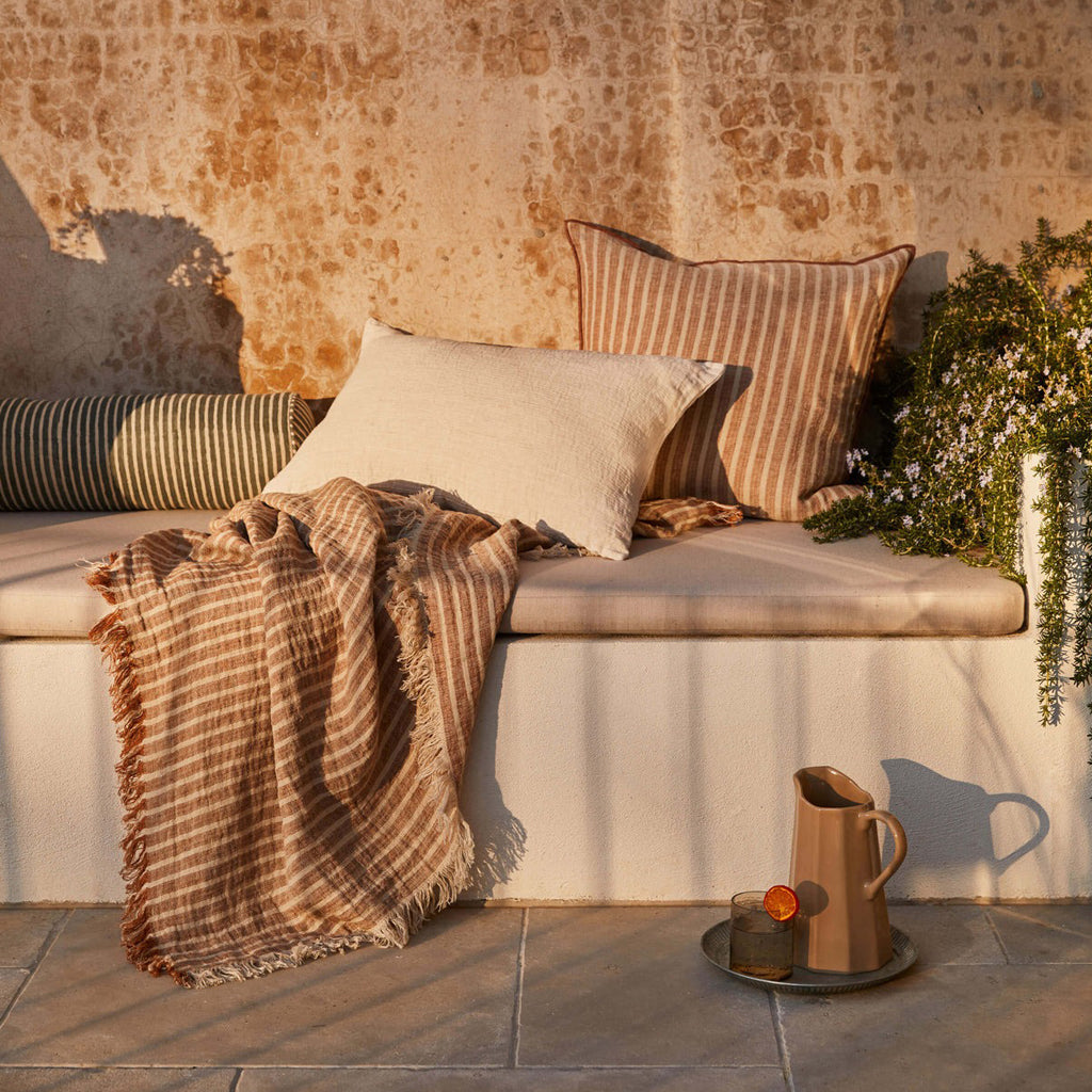 Introduce subtle print into the home with LM Home's hand block printed Margot collection. A testament to craftsmanship and design, each individual item is handmade by highly skilled artisans on quality pure linen. Margot features a subtle stripe design complimented by a simple piped edge.
