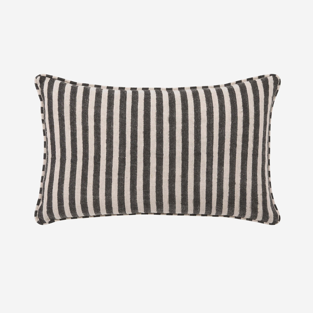 The Quinn collection celebrates modern design while using ancient artisanal techniques. Hand block printed on quality pure linen and designed exclusively in-house this product is a testament to craftsmanship with each individual item handmade by highly skilled artisans. Featuring a reversible stripe design on 100% linen this cushion is a statement pattern piece to add to your home.