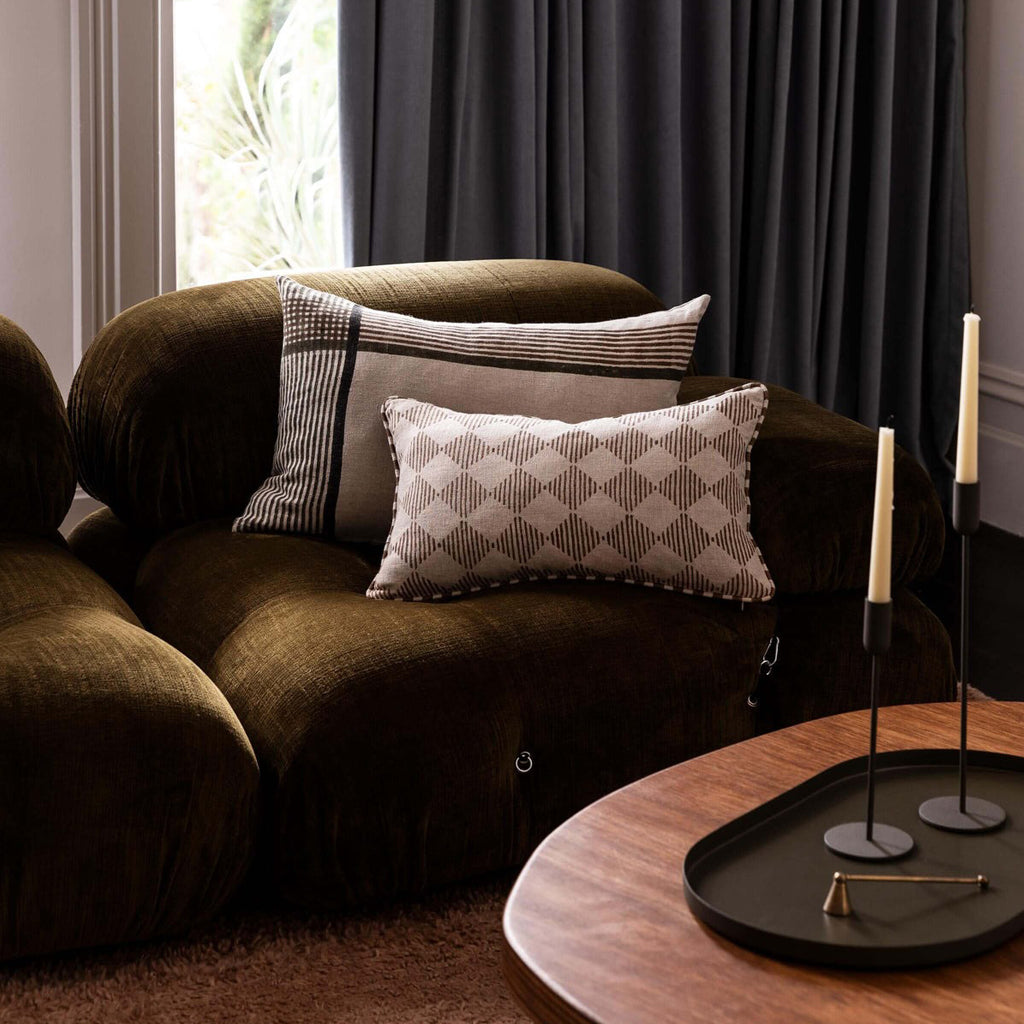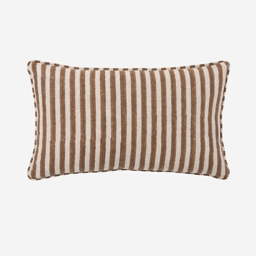 The Quinn collection celebrates modern design while using ancient artisanal techniques. Hand block printed on quality pure linen and designed exclusively in-house this product is a testament to craftsmanship with each individual item handmade by highly skilled artisans. Featuring a reversible stripe design on 100% linen this cushion is a statement pattern piece to add to your home.