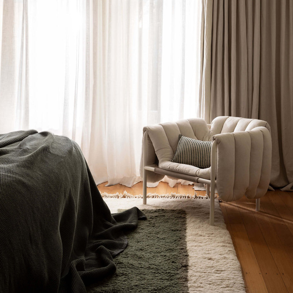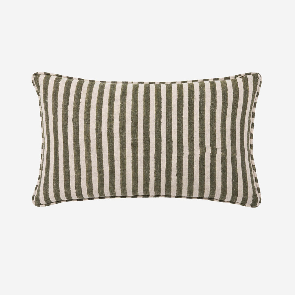 The Quinn collection celebrates modern design while using ancient artisanal techniques. Hand block printed on quality pure linen and designed exclusively in-house this product is a testament to craftsmanship with each individual item handmade by highly skilled artisans. Featuring a reversible stripe design on 100% linen this cushion is a statement pattern piece to add to your home.