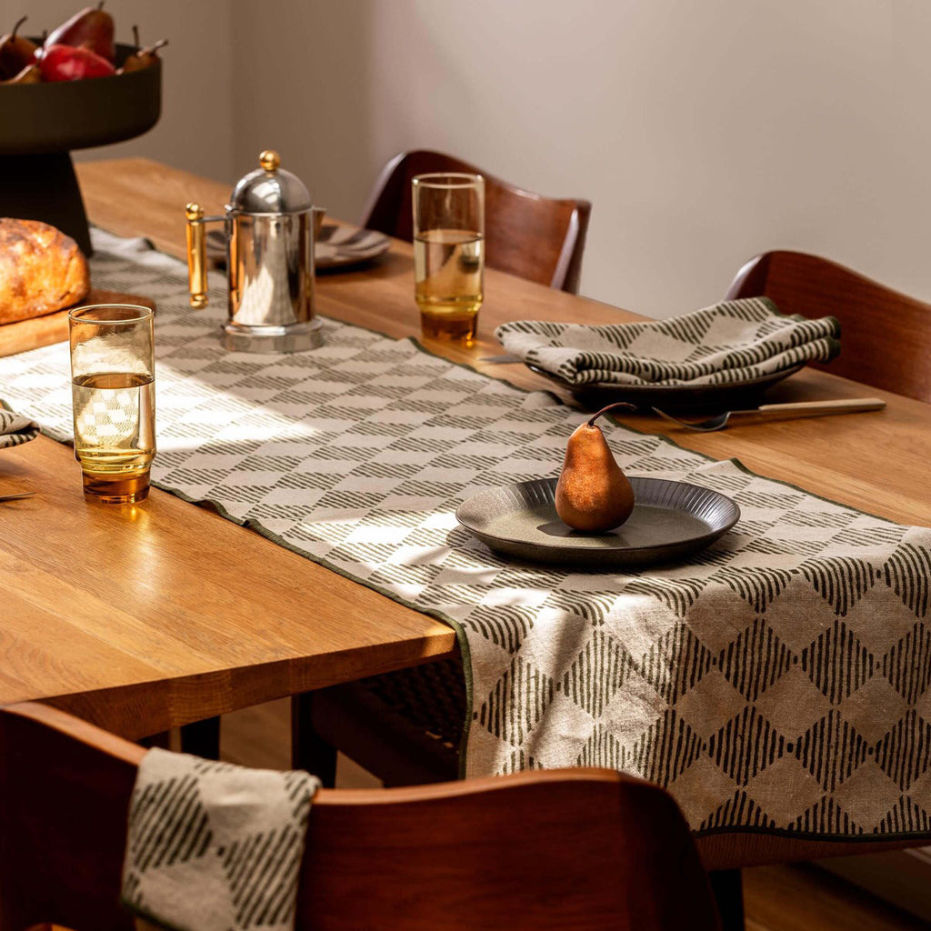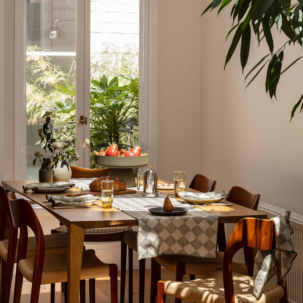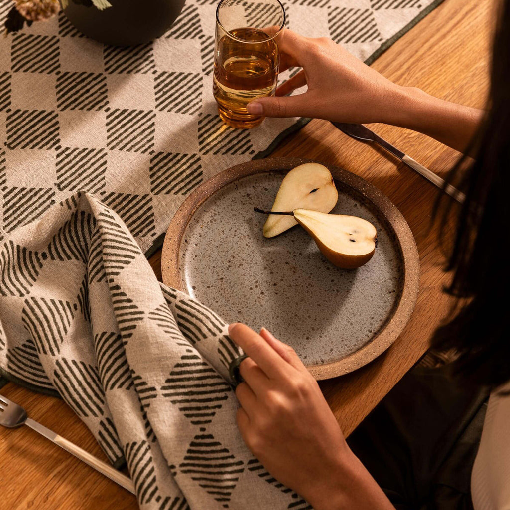 Thoughtfully designed in-house, our Quinn collection is a sophisticated addition to your table decor, hand block printed on pure linen and adorned with a thick embroidered edge, adding timeless elegance. Hand-crafted by highly skilled artisans this versatile design can be styled alongside our Quinn Table Runner to create an elevated dining experience.