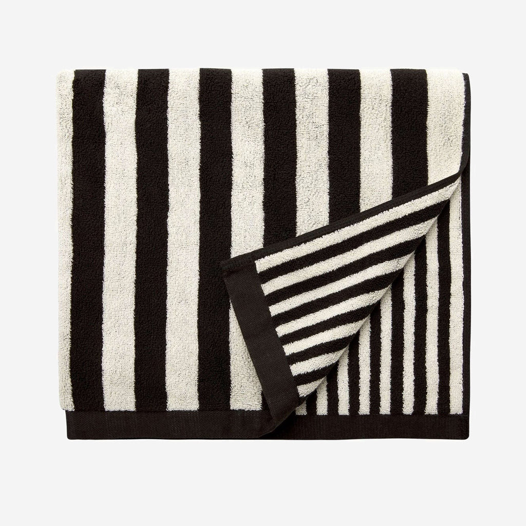 L&M Home's black and white Raye Bath Towels are a modern and elegant classic stripe, woven to create a beautiful fine and wide stripe towel. This sophisticated and neutral towel will suit any bathroom and add plenty of texture. Generous sizes and 650gsm ensure these towels are soft and absorbent.