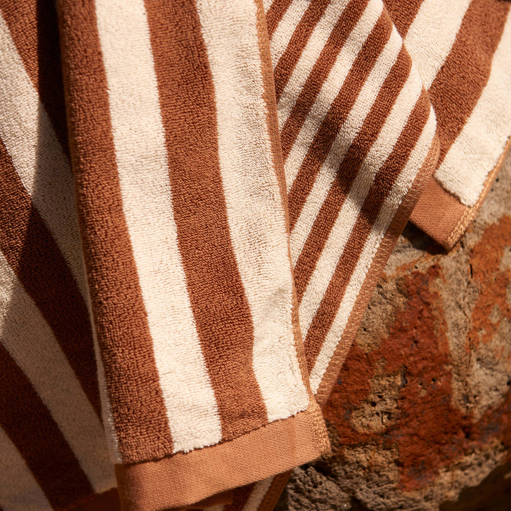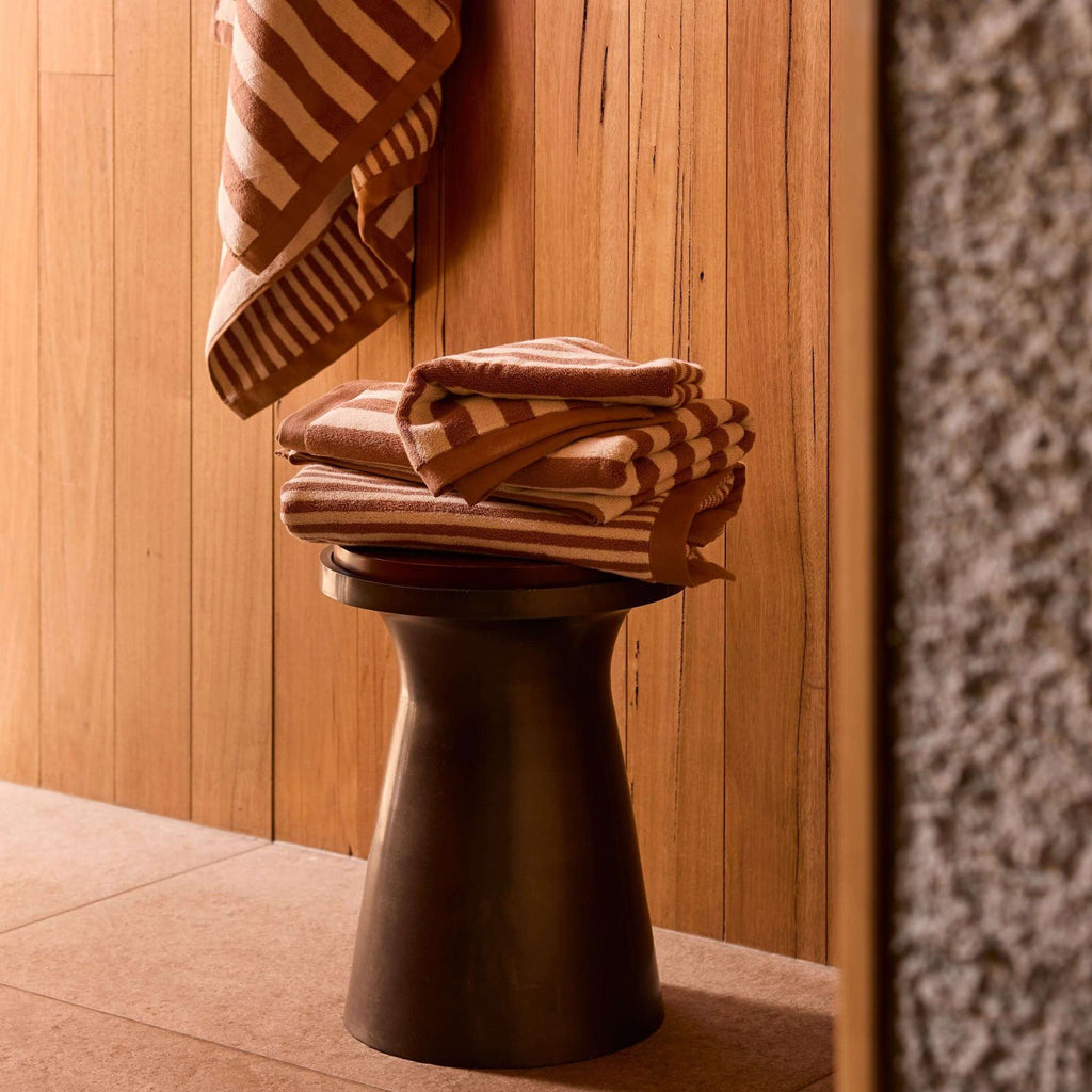 L&M Home's timeless Raye range features a reversible colourway. The soft natural stripe contrasting against terracotta makes a subtle statement in any bathroom, by the pool or at the beach. Generous sizes and 650gsm ensure these towels are ultra soft and absorbent.