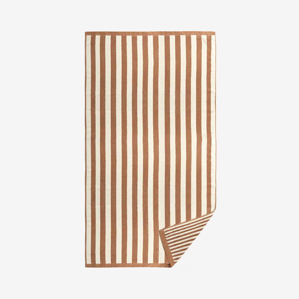 L&M Home's timeless Raye range features a reversible colourway. The soft natural stripe contrasting against terracotta makes a subtle statement in any bathroom, by the pool or at the beach. Generous sizes and 650gsm ensure these towels are ultra soft and absorbent.
