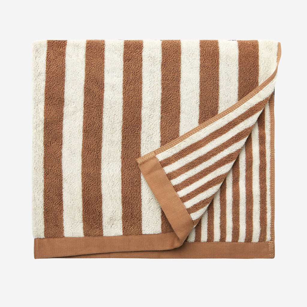 L&M Home's Raye Bath Towels are a modern and elegant twist on a classic, with terracotta and white stripes woven together to create a beautiful towel. This sophisticated and neutral towel will suit any bathroom and add plenty of texture. Generous sizes and 650gsm ensure these towels are soft and absorbent.