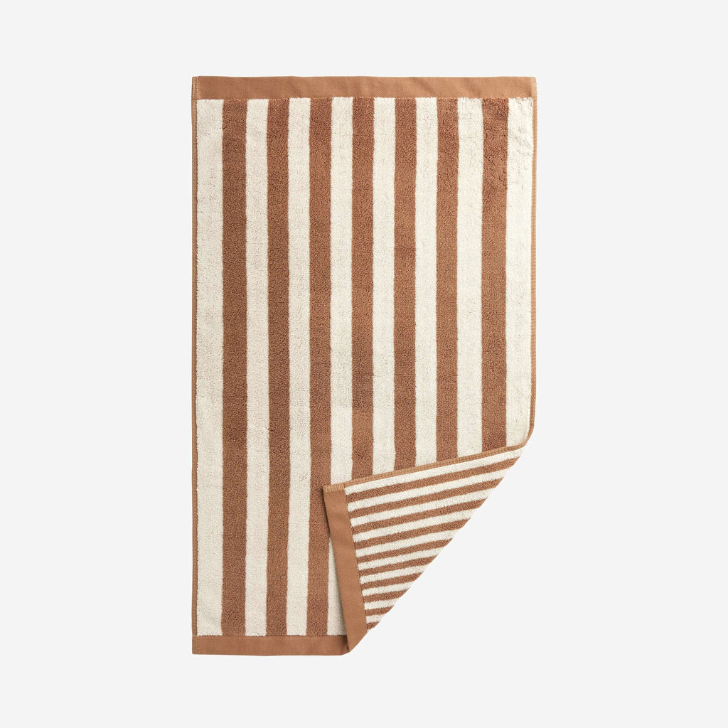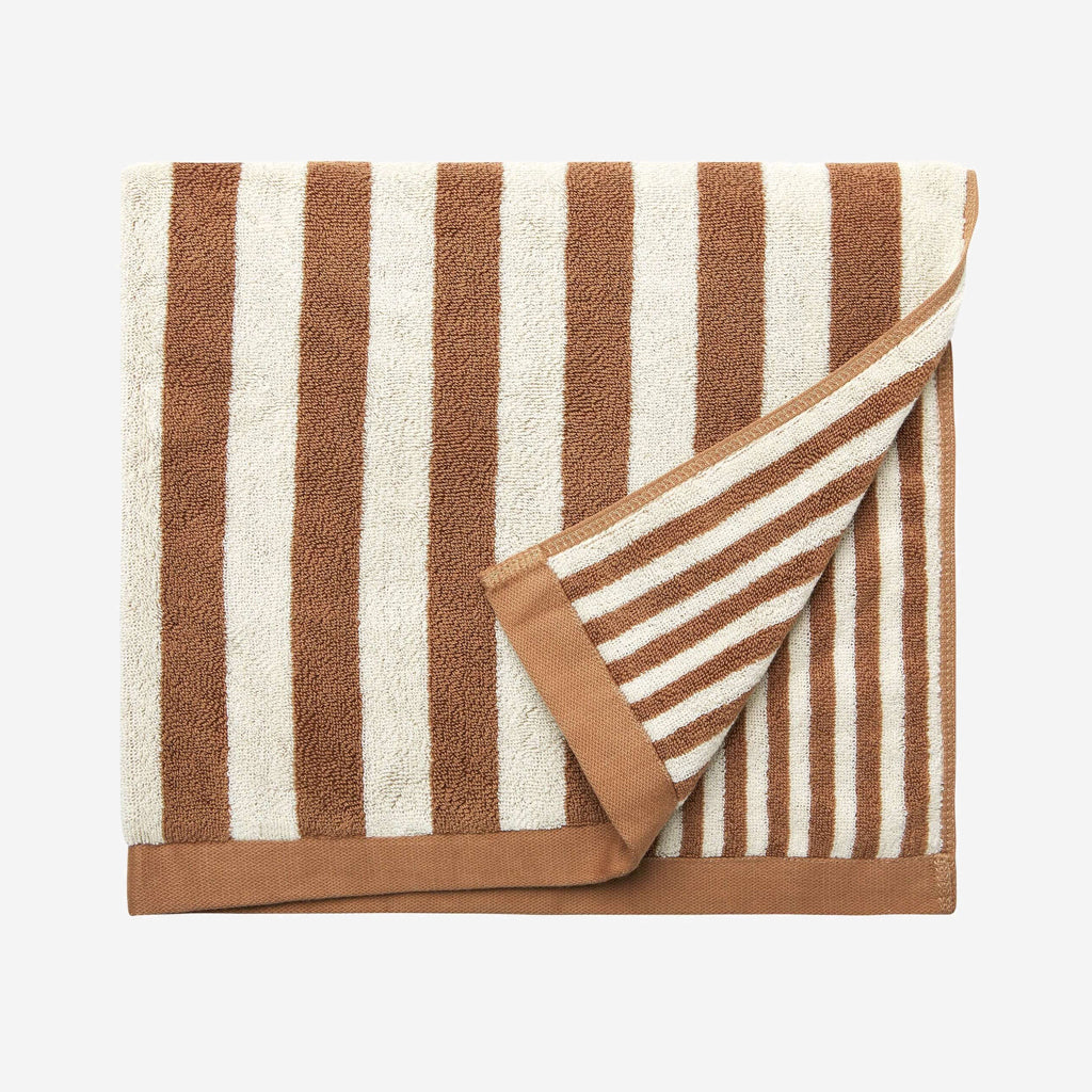 L&M Home's timeless Raye range features a reversible colourway. The soft natural stripe contrasting against terracotta makes a subtle statement in any bathroom, by the pool or at the beach. Generous sizes and 650gsm ensure these towels are ultra soft and absorbent.