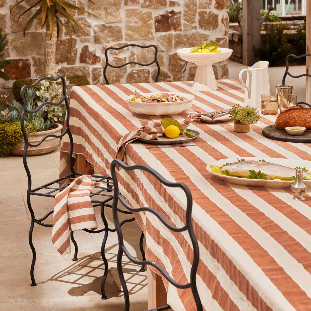 Infuse your home with Mediterranean flair, the Riviera collection combines a linen/cotton blend with a bold stripe pattern. Hand-block printed in Jaipur, each piece in this collection is a testament to craftsmanship and design, meticulously handcrafted by highly skilled artisans. Ideal for everyday dining or stylish entertaining.