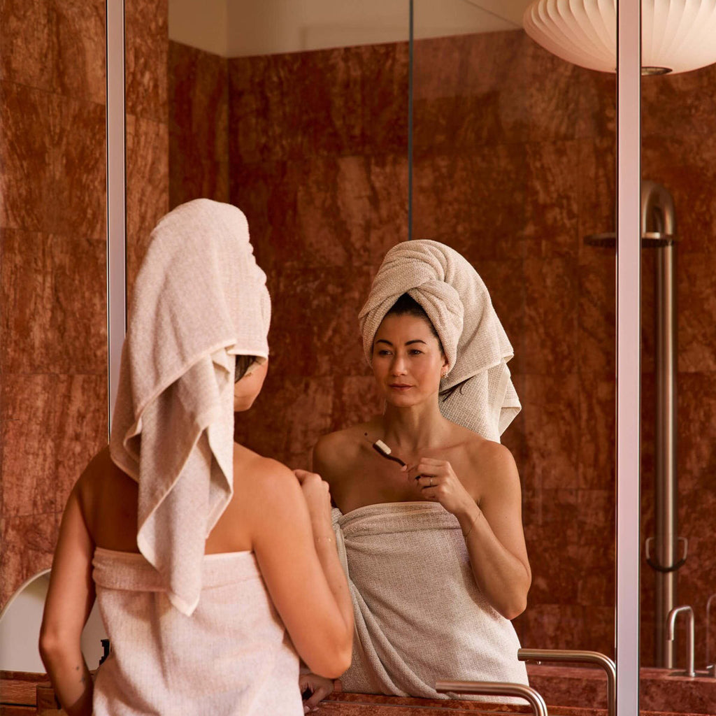 L&M Home's Nougat Tweed Bath Towel is a modern and elegant twist on a classic, with olive, green and white tones woven together to create a beautiful deep coal towel. This sophisticated and neutral towel will suit any bathroom and add plenty of texture. Generous sizes and 650gsm ensure these towels are soft and absorbent.