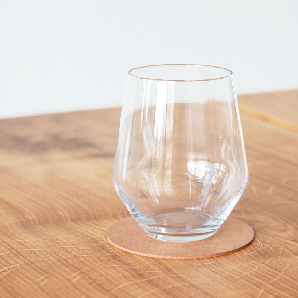 Protect your table in style with these nupo leather circle coasters in nature from LIND DNA. Made from upcycled durable leather, not only are they stylish, they are also super easy to clean making them perfect for everyday use. The unique curve shape of the coaster allows functional versatility throughout the home.