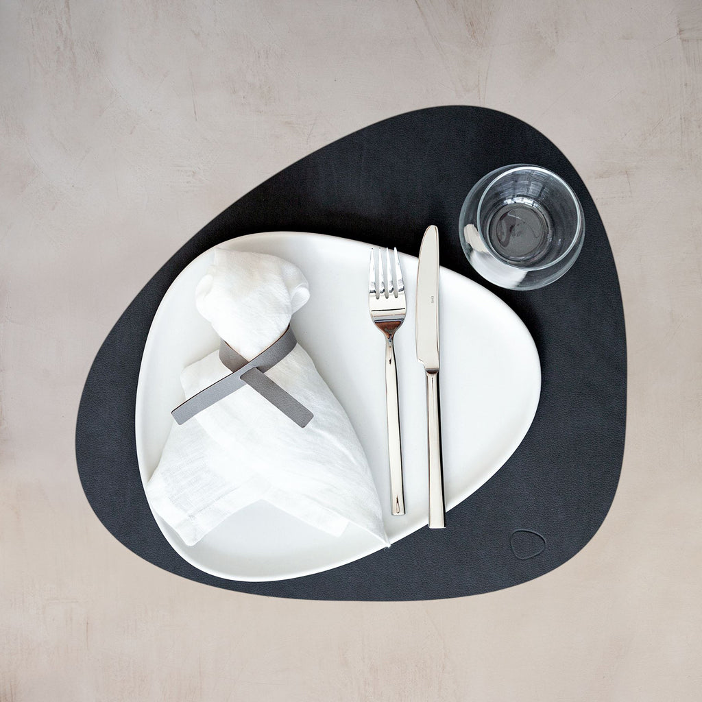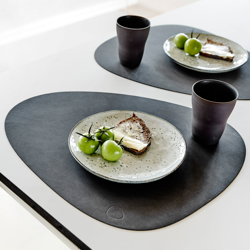 Breathe new life into your table setting with the Lind DNA curve leather table mat in black Made from recycled leather, the dinner mats have always been a purposeful addition to the dining table - and for every meal of life. Use them as they are or pair them with matching or the contrasting glass mat to complete the setting.