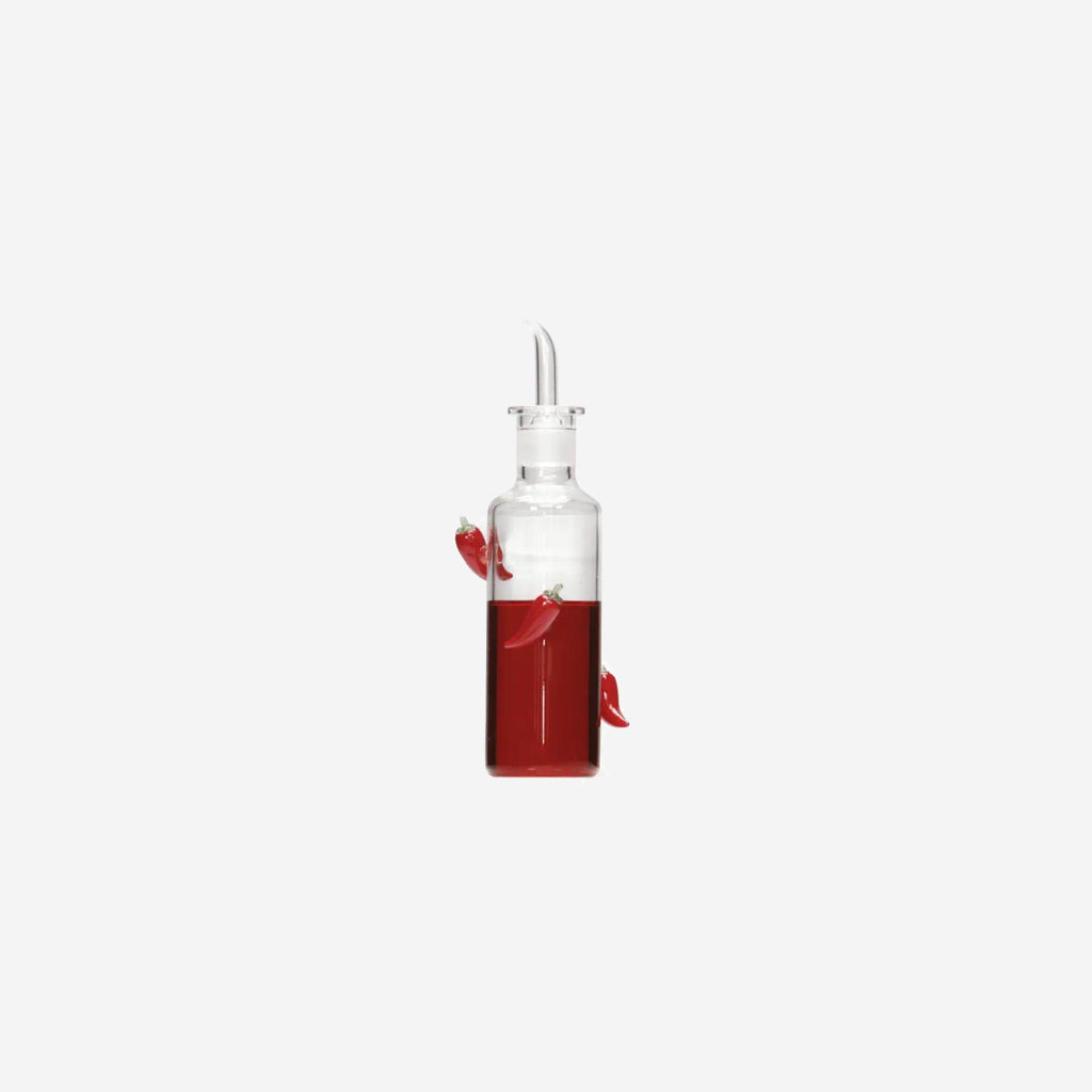 Spice up your culinary ritual with this playful glass bottle, expertly designed to dispense your favourite chilli oil in the most elegant way. Handcrafted glass chillies are studded across the bottle, adding just the right touch of heat (no extra flakes required!). Let this vibrant vessel become the fiery centrepiece of your kitchen, ready to ignite every dish (and conversation) with Maison Balzac’s signature charm.