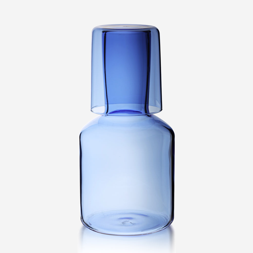 Four drinking tumblers are each individually mouth blown in borosilicate glass. Each cup is heat resistant and add extraordinary pleasure to the simple act of drinking water.