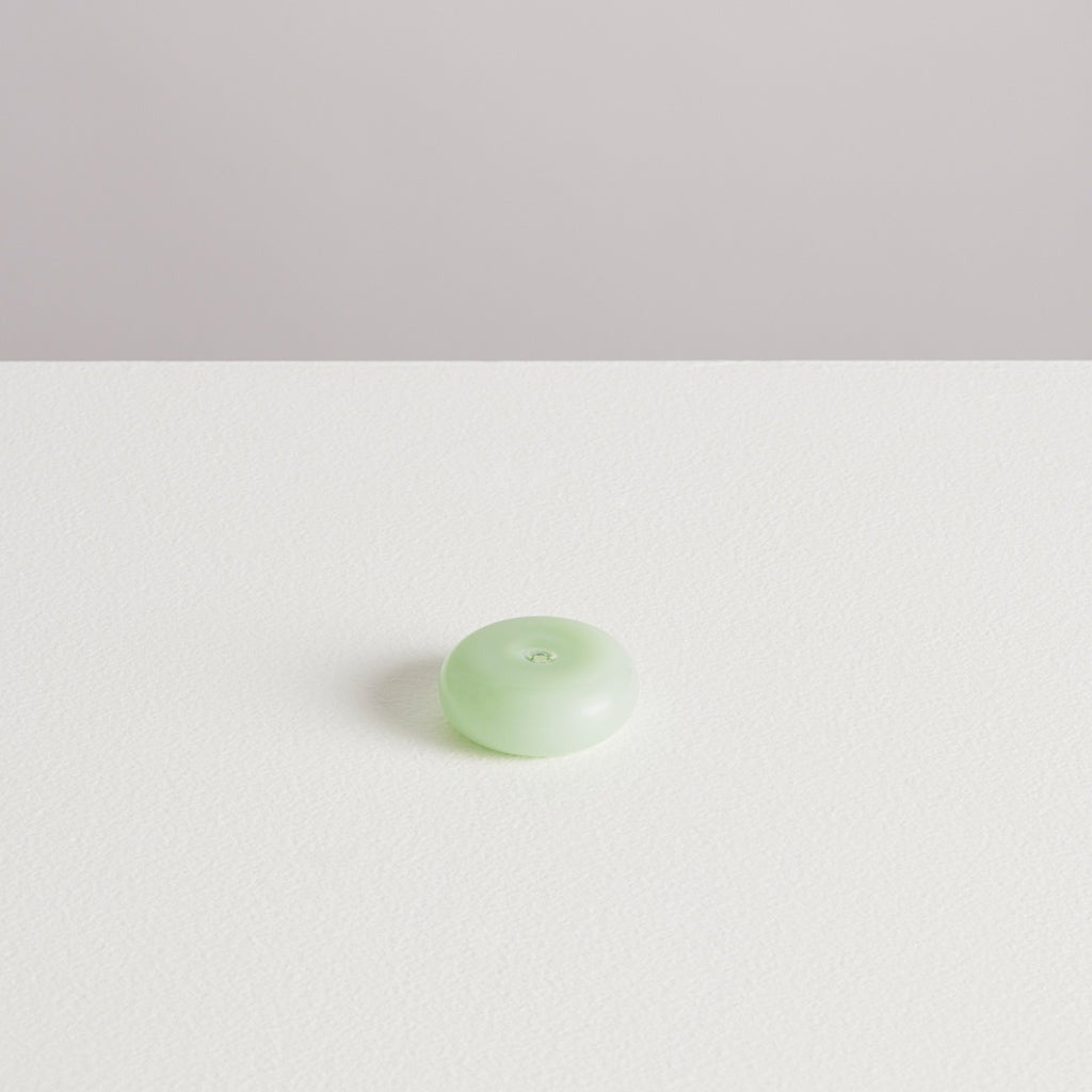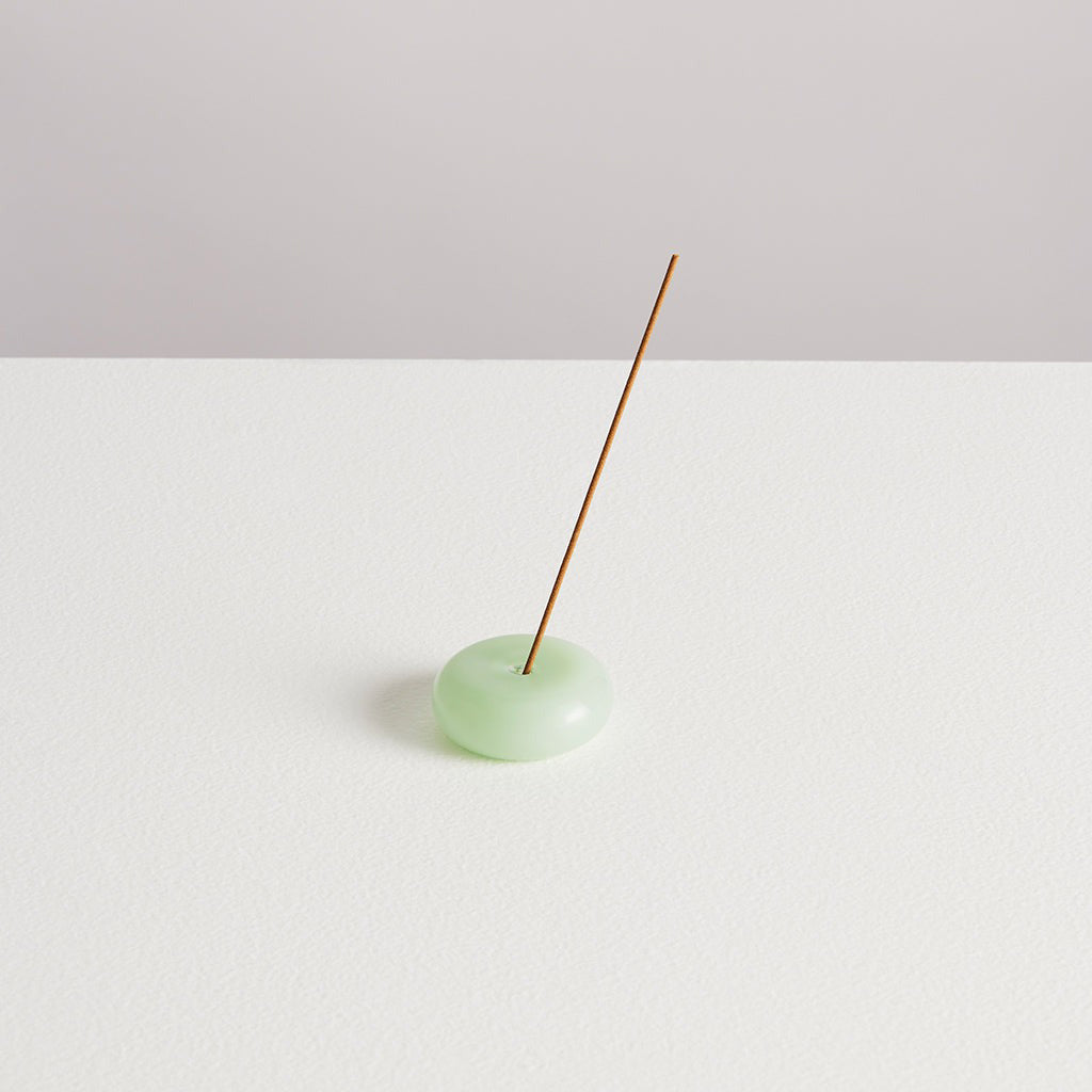'Le Galet' The Pebble. A playful, minimal bubble of glass turned into an incense stick holder. This playful and minimal bubble of coloured glass is an extremely simple yet efficient incense stick holder dressed in a new, dreamy mint colour. Pair perfectly with your favourite scent from our handmade Japanese incense collection.