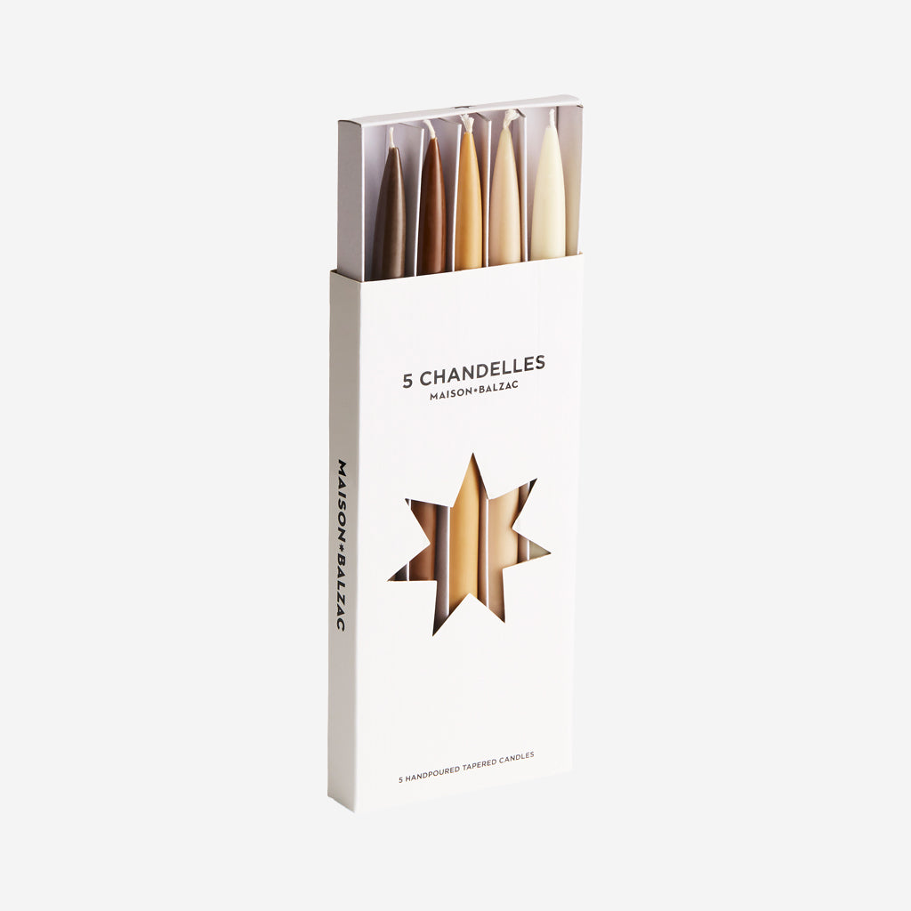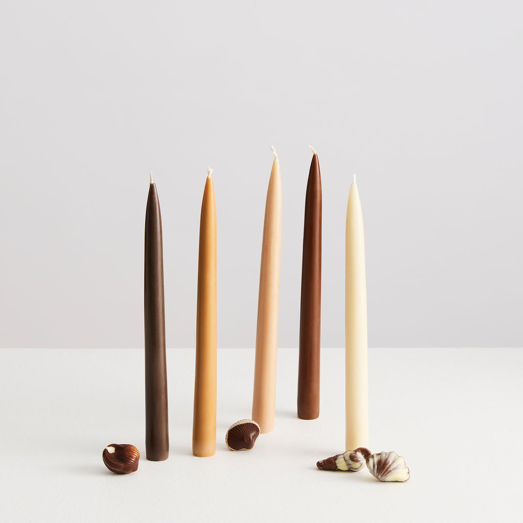 The Chocolate Box is a delicious set of 5 dinner candles that mimics the shades of chocolate from Dark, Milk, Caramel to Blond and White. It is an excellent choice to enchant and sweeten you next dinner party without adding to your sugar levels.