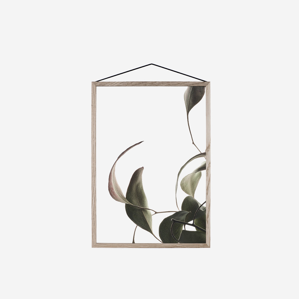This new collection, called Floating Leaves by Norm Architects, are images of botanical leaves at various stages of fresh green beauty and decay printed directly onto transparent foil which then sits between the perspex glass of the Moebe Frame. The end result is a unique & innovative transparent print that gives the illusion of a real life leaf floating within the frames.