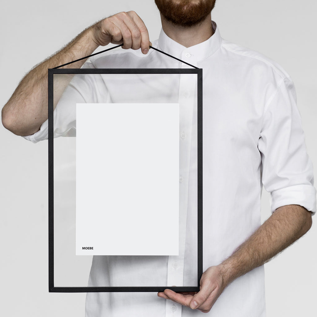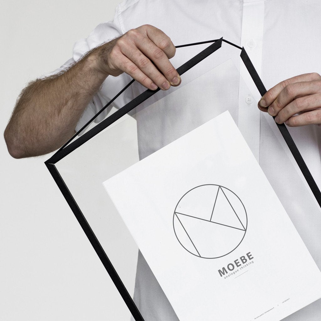 Let your art collection or photos speak for themselves by framing them in Denmark's Moebe's beautiful and minimalist Art frames. Frame is at its most simple, designed so that it in effect as been reduced right back to its core form and given a layer of transparency. It consists of two pieces of acrylic glass, four lists made of aluminium and a specially made rubber band. The dual function of this rubber band is what holds the frame together and serves as the hanging point for the frame on your wall.