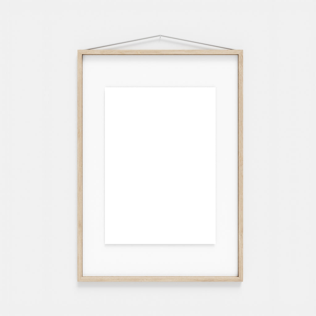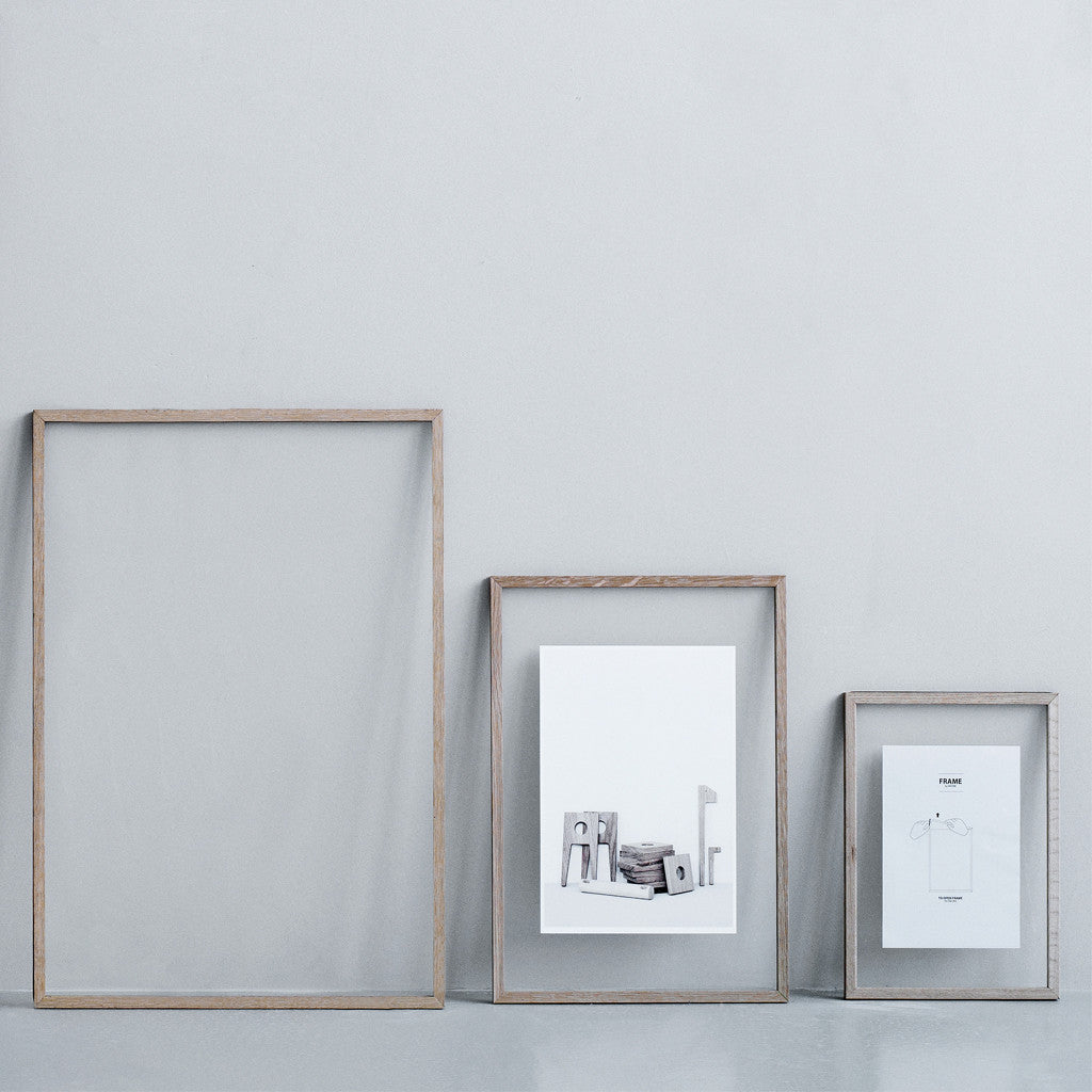Let your art collection or photos speak for themselves by framing them in Denmark's Moebe's beautiful and minimalist Art frames. Frame is at its most simple, designed so that it in effect as been reduced right back to its core form and given a layer of transparency. It consists of two pieces of acrylic glass, four lists made of oak and a specially made rubber band. The dual function of this rubber band is what holds the frame together and serves as the hanging point for the frame on your wall.