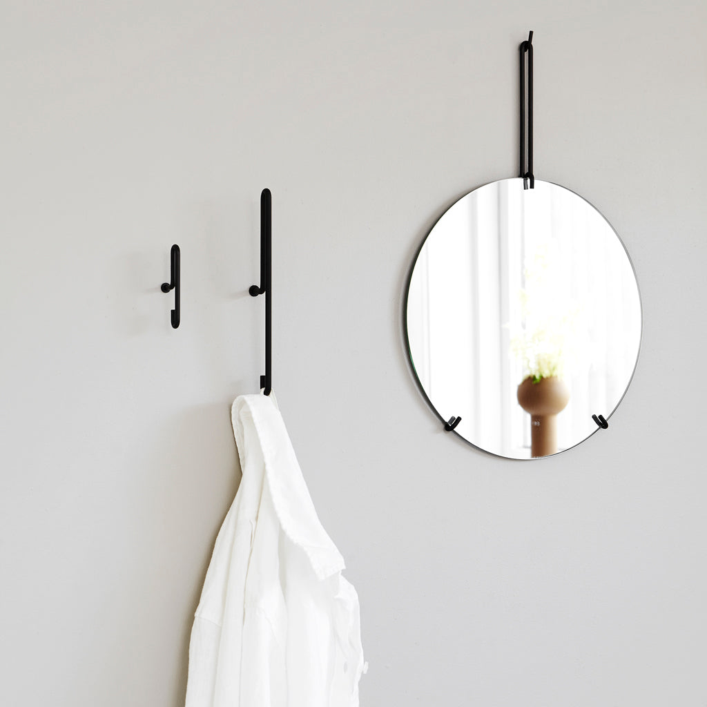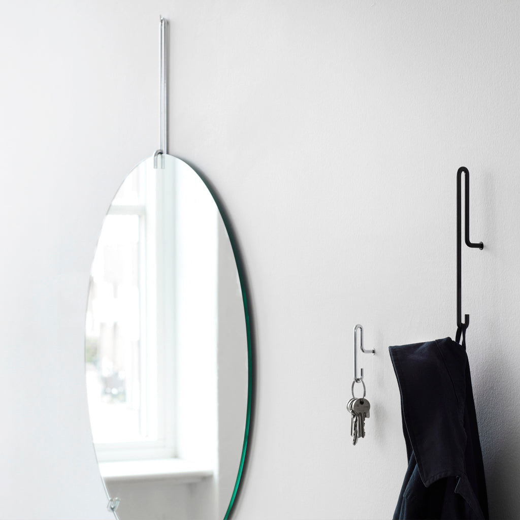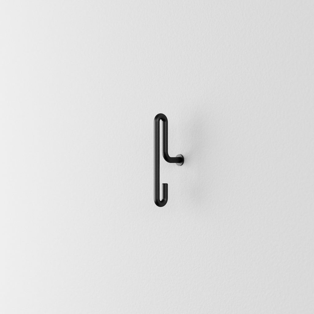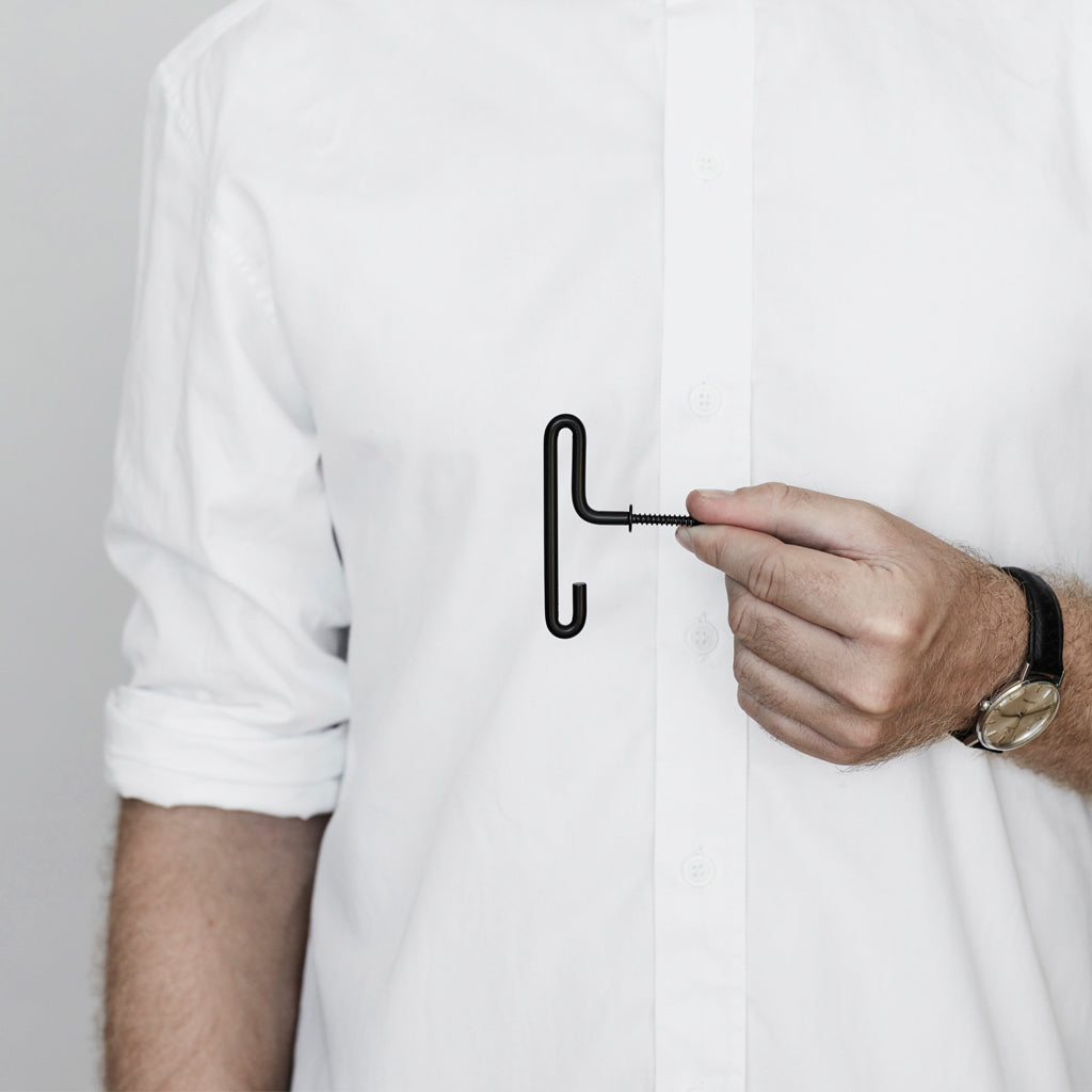 Formed from one continuous element, Wall Hook has two points for hanging your coat, keys or cap - either over the top of the bent wire or on the hook underneath. Wall Hook can be used as a single hook or as a series of hooks placed together. It comes in two sizes and three finishes, giving you the option to mix and match as you like.