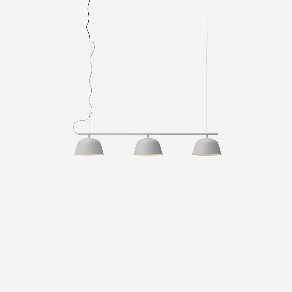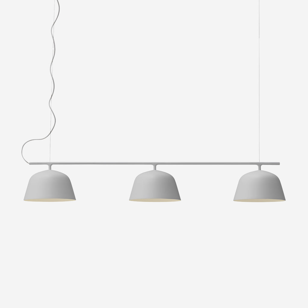 The Ambit Rail Lamp is characterized through its simple lines and elegant shapes, bringing a refined light to any space. With its shades being made of handspun aluminum, the Ambit Rail Lamp features white interiors that provide a contrast to its outside shade while enhancing the light emitted into the room of any home, office or hospitality space.