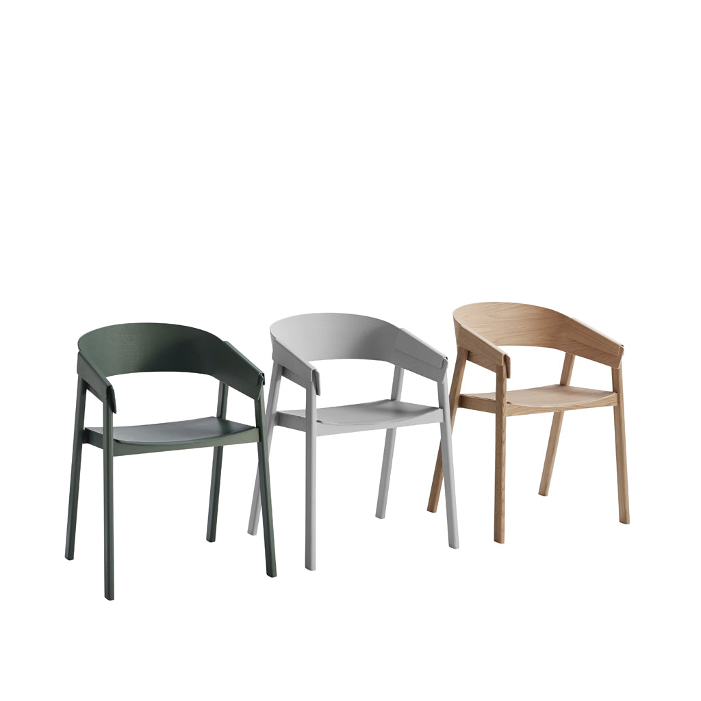 Referencing the values of honest craftsmanship and Scandinavian materiality, the Cover Armchair is an elegant perspective on the timeless wooden armchair. With its curved backrest and folded armrest covers, the Cover Armchair explores the possibilities of wooden veneer, paired with a deep comfort, modern expression and base in solid wood. Echoing the seamless appearance of the chair, it features no visible screws for a simple touch. Use the Cover Armchair in the living room, hallway or bedroom of the home as well as in restaurants, canteens, educational institutions, workplaces and more.