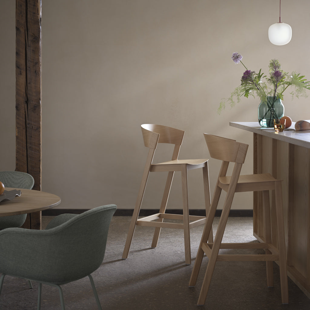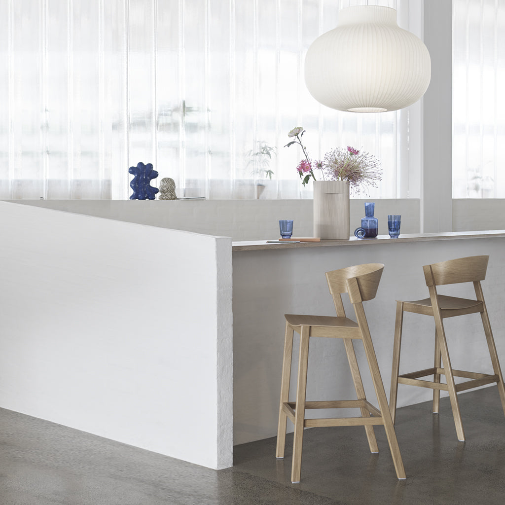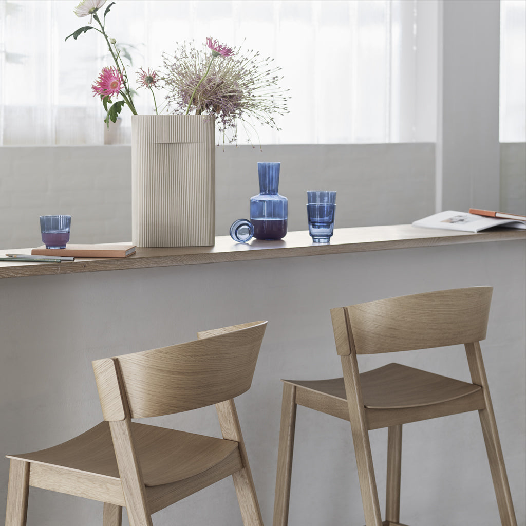 With its curved backrest that folds elegantly around its back legs and ties the design together, the Cover Counter Stool challenges the possibilities of veneer through a forward-thinking approach, echoing the ideas of Scandinavian design. The design is lightweight and features a tall, enveloping back for extensive comfort that allows one to be seated in its seat for hours on end, be it for a dinner, a drink or even working at a counter desk.