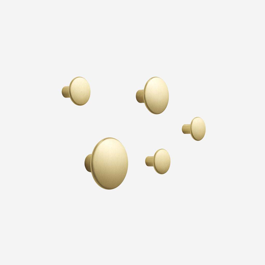 Rendered in strong brass, the Dots Metal are functional objects with a vibrant look. Taking a playful approach to the conventional coat hook, Dots Metal can be arranged in infinite numbers and combinations in a variety of sizes.