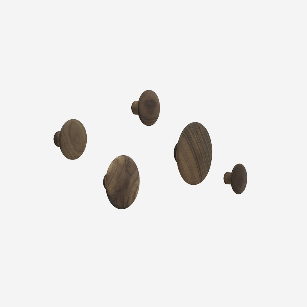 The Dots are versatile wooden hooks in a functional, vibrant design. Taking a playful approach to the conventional coat hook, Dots can be arranged in infinite numbers and combinations in a variety of sizes. Their diverse range of uses makes them practical for both private and professional spaces.