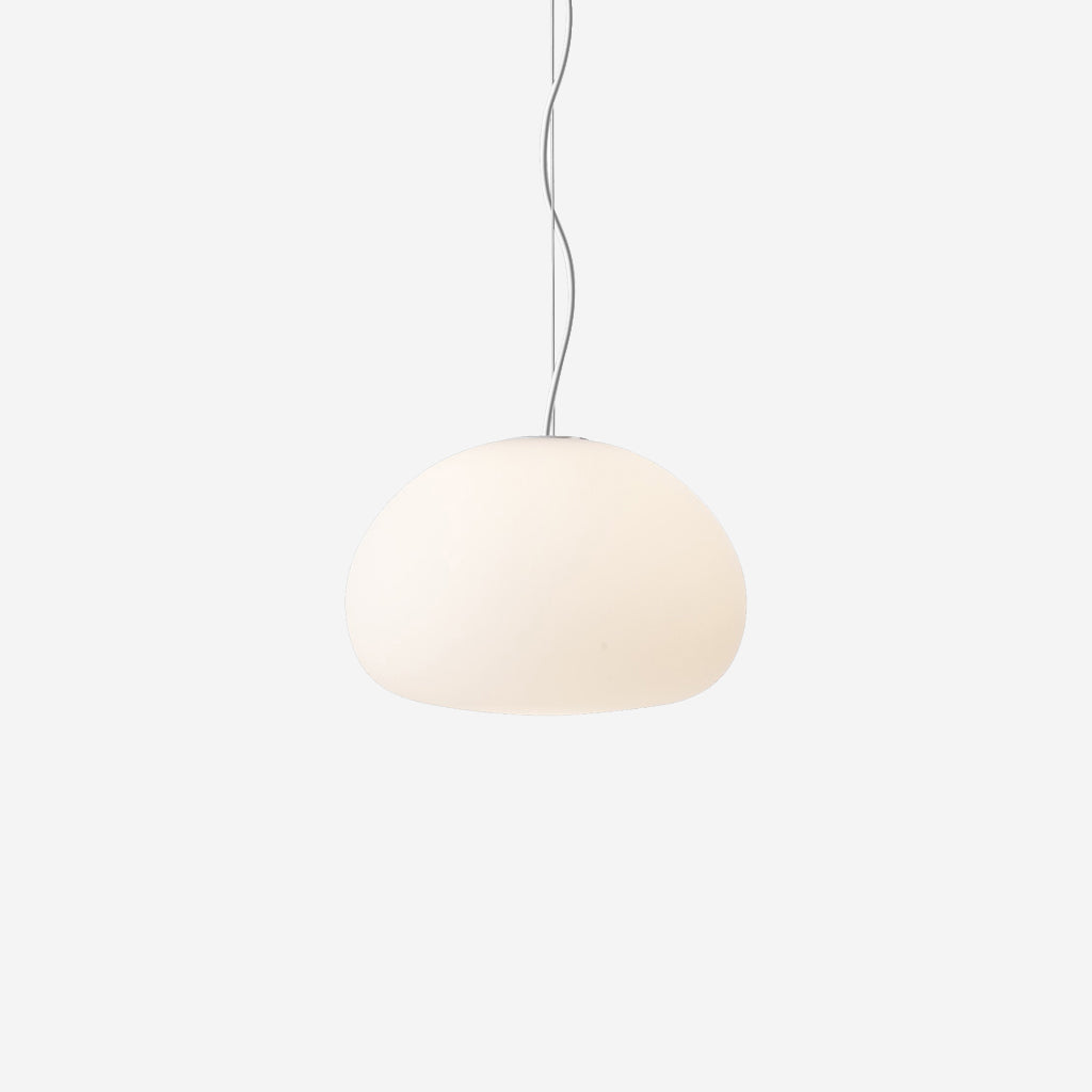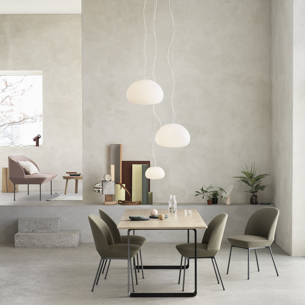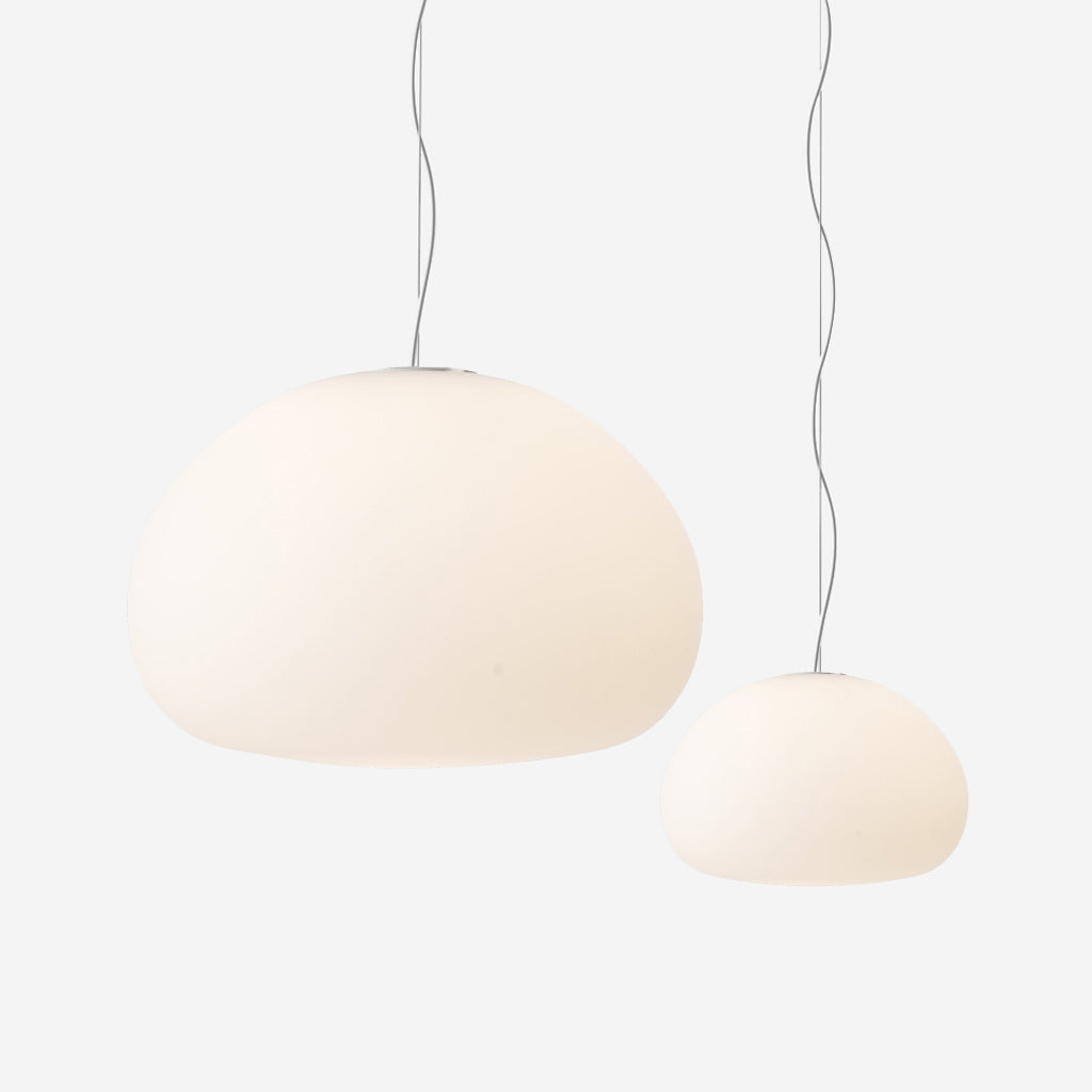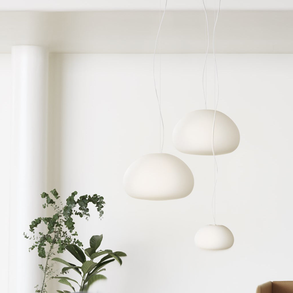 The Fluid Pendant is inspired by a resting drop of water. The organic shape gives it a soft appearance which is enhanced by the frosted glass and the diffused light. The lamp can be hung alone or in clusters to create a dramatic yet cosy atmosphere and ambient light.