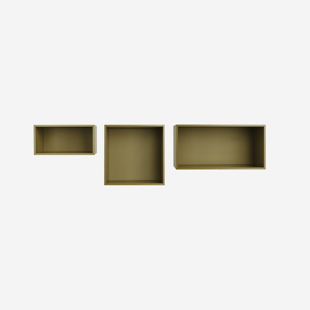 The Mini Stacked is a wall-hanging alternative to the Stacked Storage System with a lighter expression and smaller dimensions, available across various sizes and colours. The Mini Stacked Storage System is an elegantly functional match for smaller spaces such as kitchens, hallways, bedrooms, and workplace and hospitality settings.
