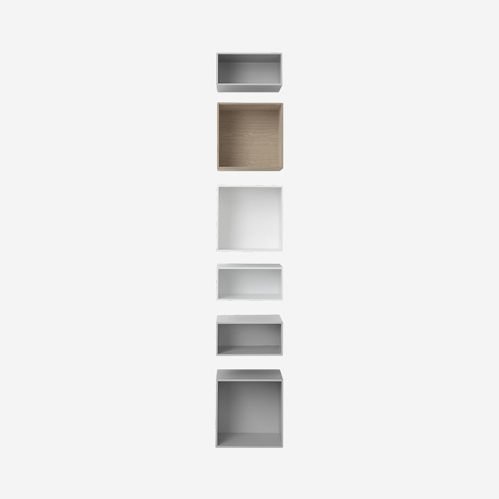 The Mini Stacked is a wall-hanging alternative to the Stacked Storage System with a lighter expression and smaller dimensions, available across various sizes and colours. The Mini Stacked Storage System is an elegantly functional match for smaller spaces such as kitchens, hallways, bedrooms, and workplace and hospitality settings.