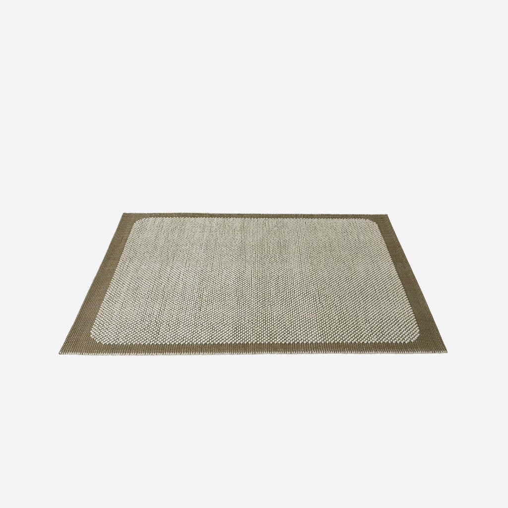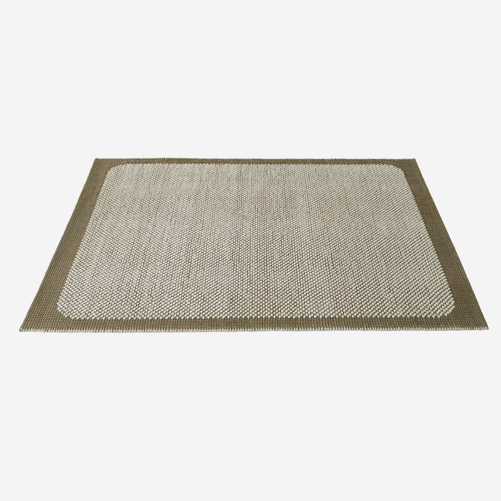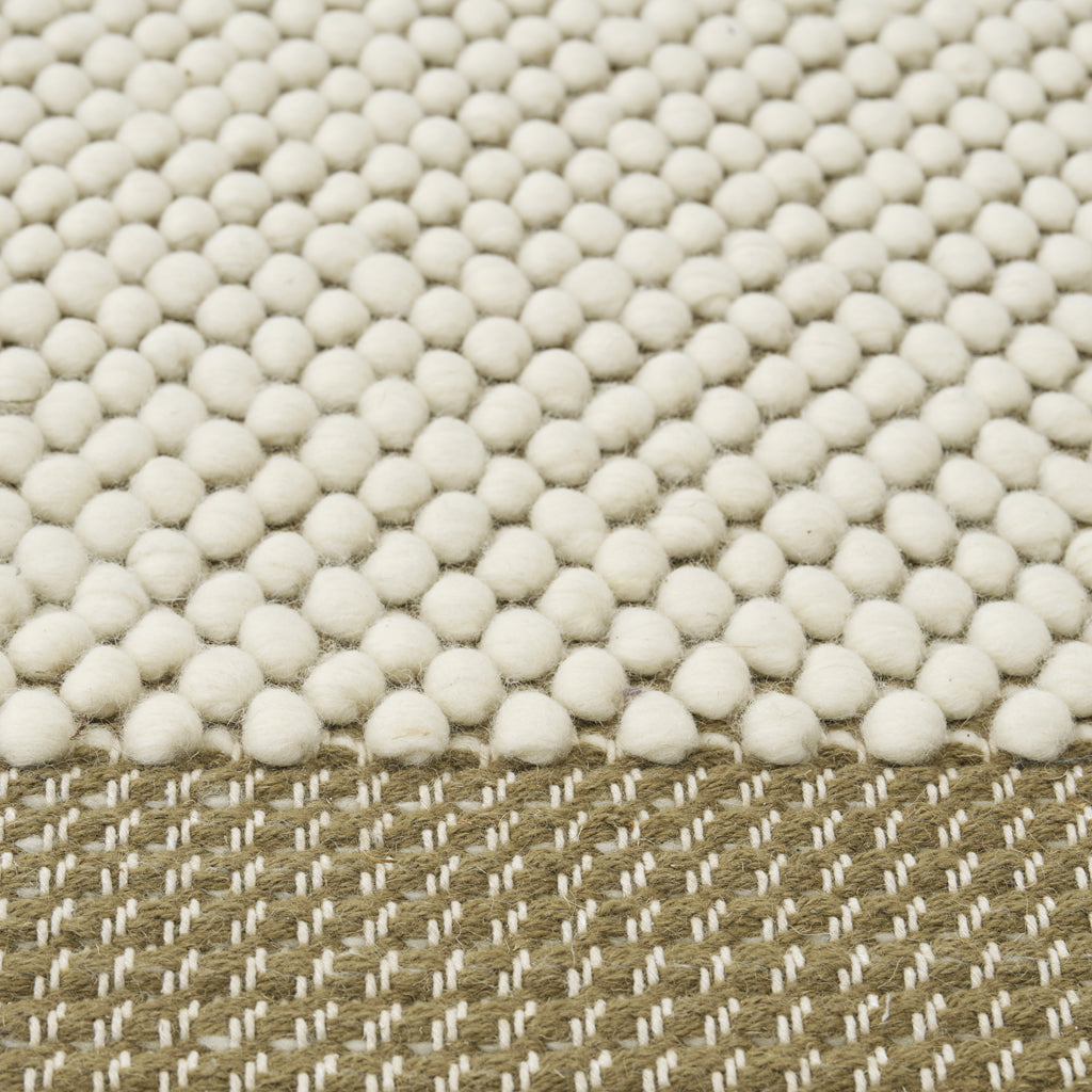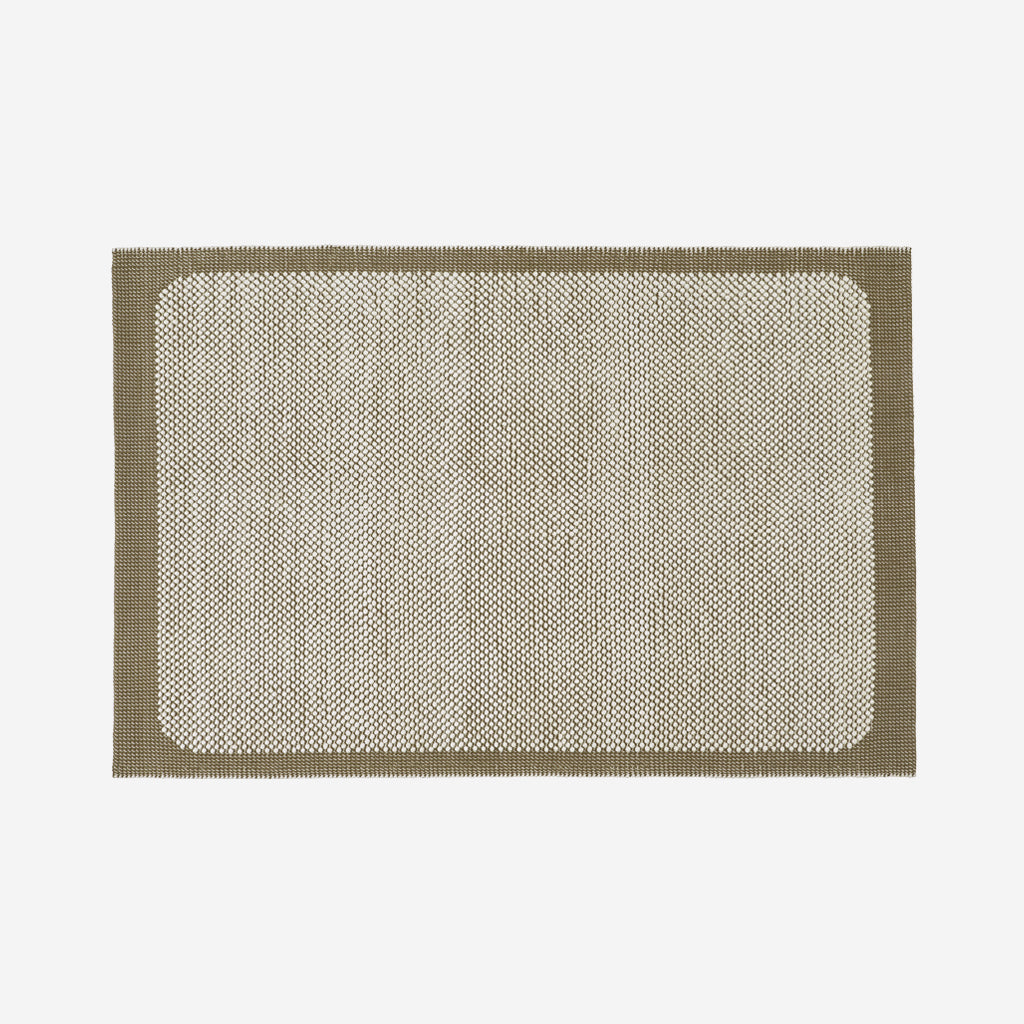 Pebble Rug has a diverse and tactile surface, inspired by the sensuous feeling of walking across a pebbled beach. Its handwoven structure contrasts the feel of its soft, wool loops with a canvas base in a sturdier wool quality. Pebble Rug has a distinct and modern woven texture for any home, hospitality setting, lobby, hotel space or co-working area.