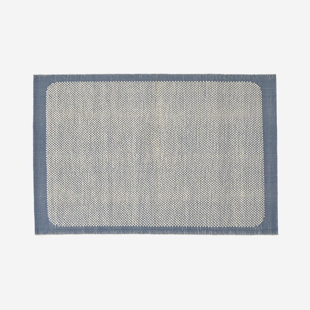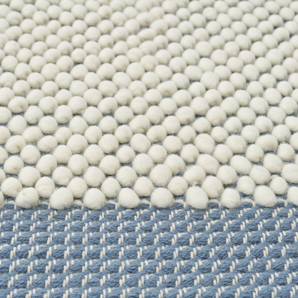 Pebble Rug has a diverse and tactile surface, inspired by the sensuous feeling of walking across a pebbled beach. Its handwoven structure contrasts the feel of its soft, wool loops with a canvas base in a sturdier wool quality. Pebble Rug has a distinct and modern woven texture for any home, hospitality setting, lobby, hotel space or co-working area.