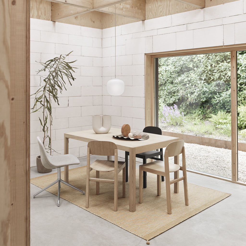 The Ply rug gently hints towards the weaving traditions of the past, seen by the woven tails of the design. Available in three sizes and made of 100% wool, the Ply rug is a high-quality and expertly-crafted area rug that will bring subtle warmth to any room.