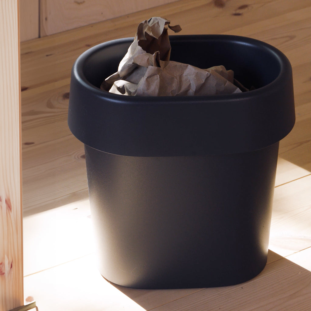 Reduce Paper Bin takes its name from the art of reducing; the amount of virgin material used in manufacturing, of rubbish and of form, to create a refined expression of an everyday object. Made using 1OO% recycled ABS plastic from post-consumer waste, it is a straightforward design with a soft and inviting shape. The beauty is in its details like the tactile, matte surface or the characteristic lid subtly concealing the bin bag. Reduce Paper Bin is an all-around object that feels equally at home in the kitchen, workshop and office.